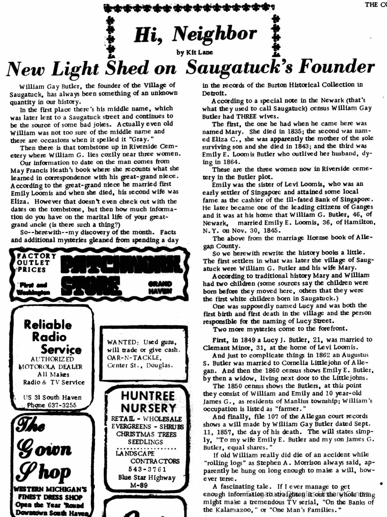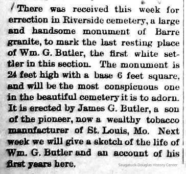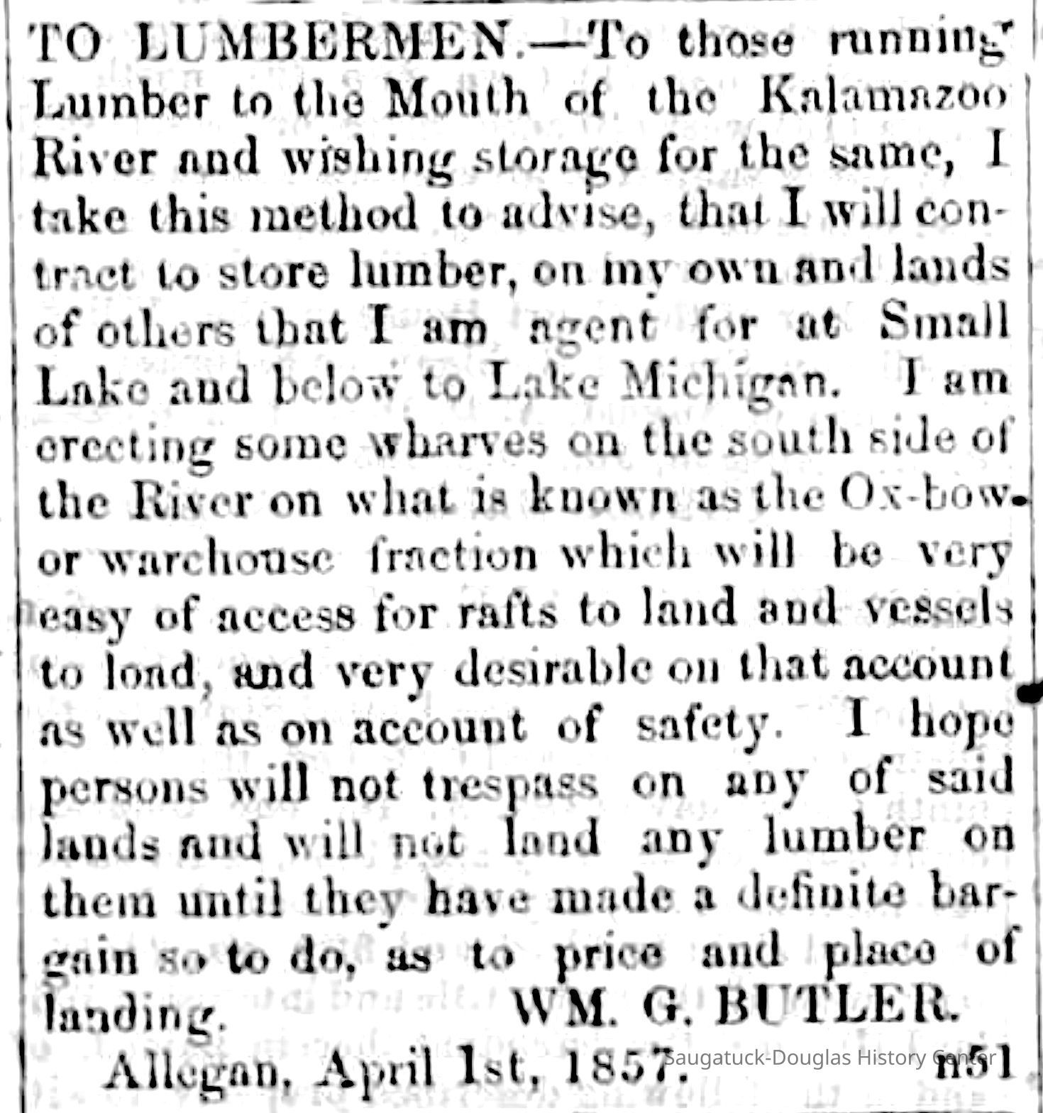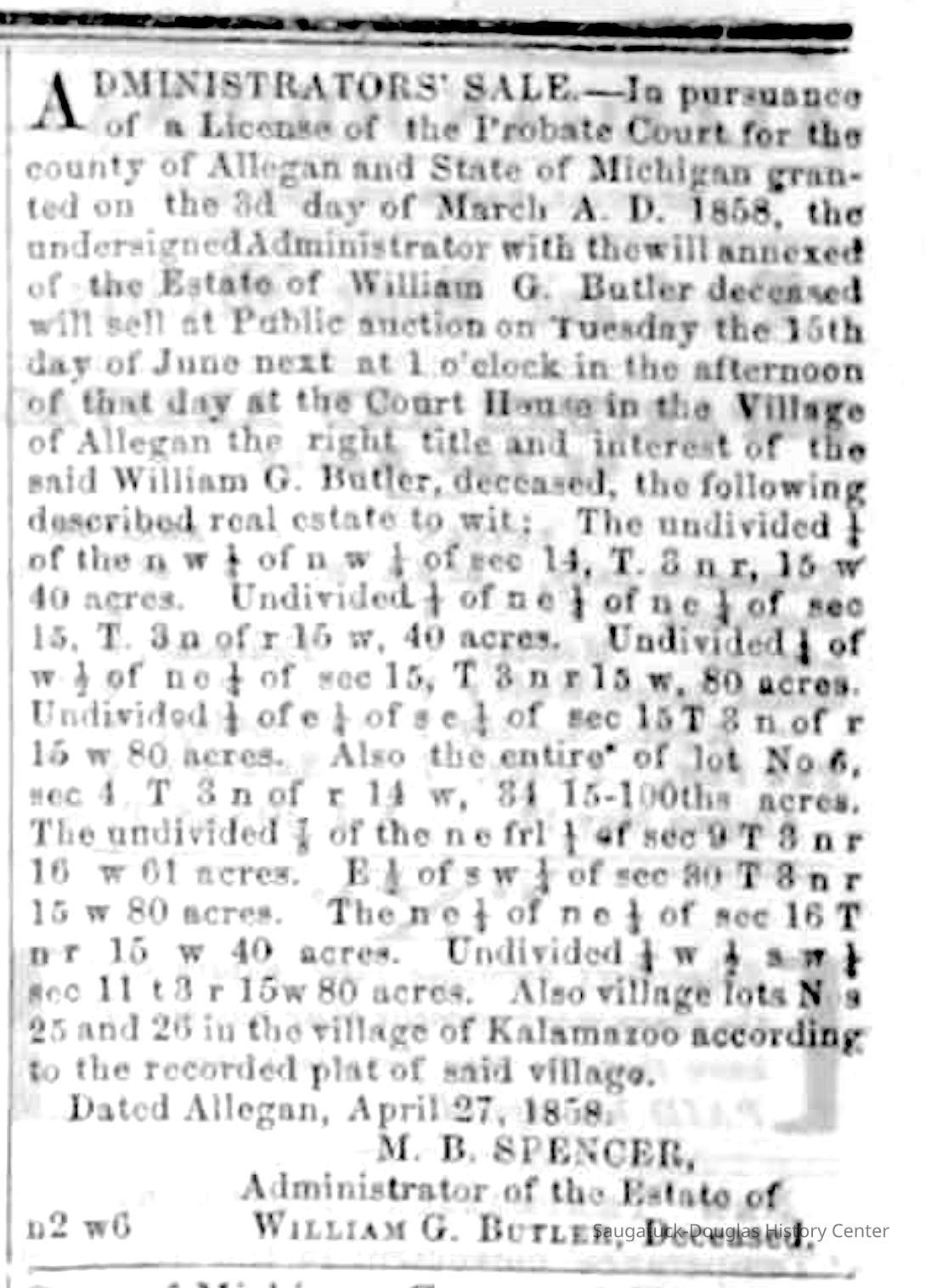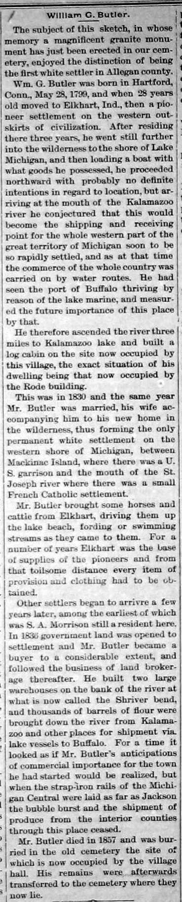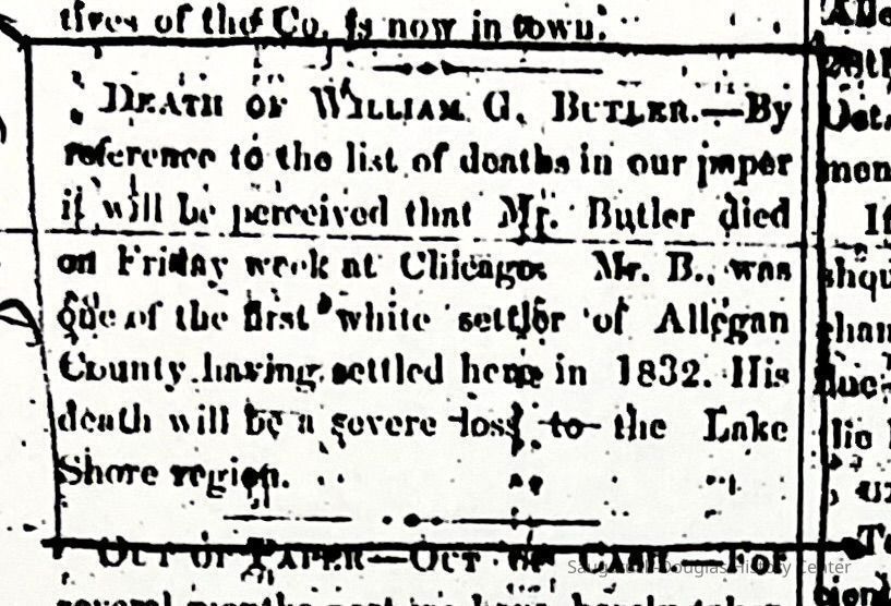 As more public records become available on the web, interesting facts are coming to light about the land purchases of William G. Butler, who, with his wife, Mary, and two children were the first settlers in Allegan County, and the founders of Saugatuck.