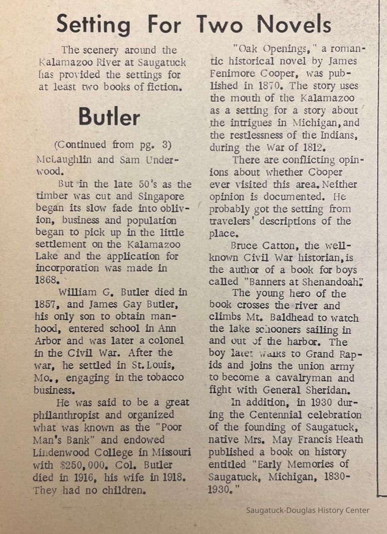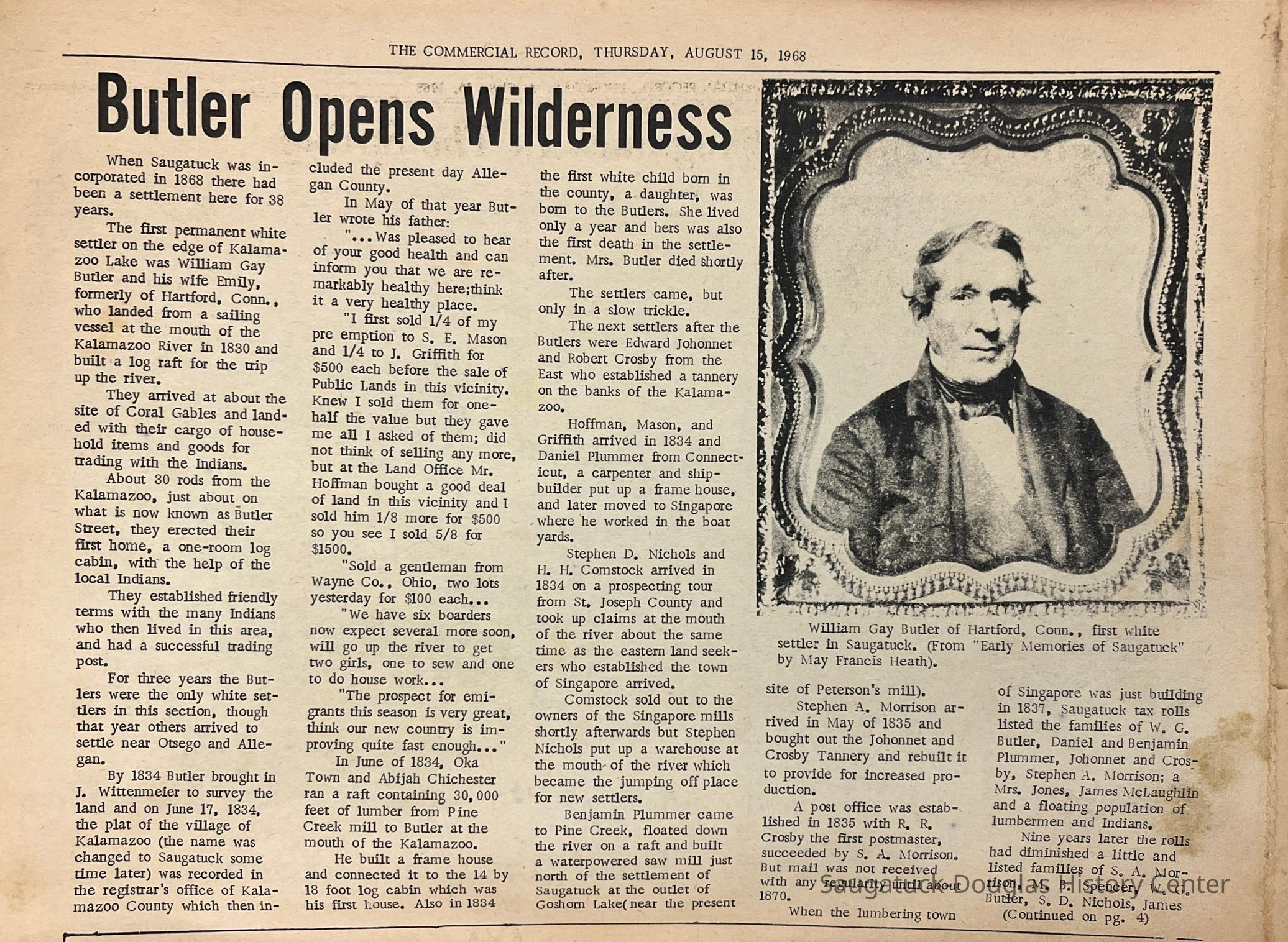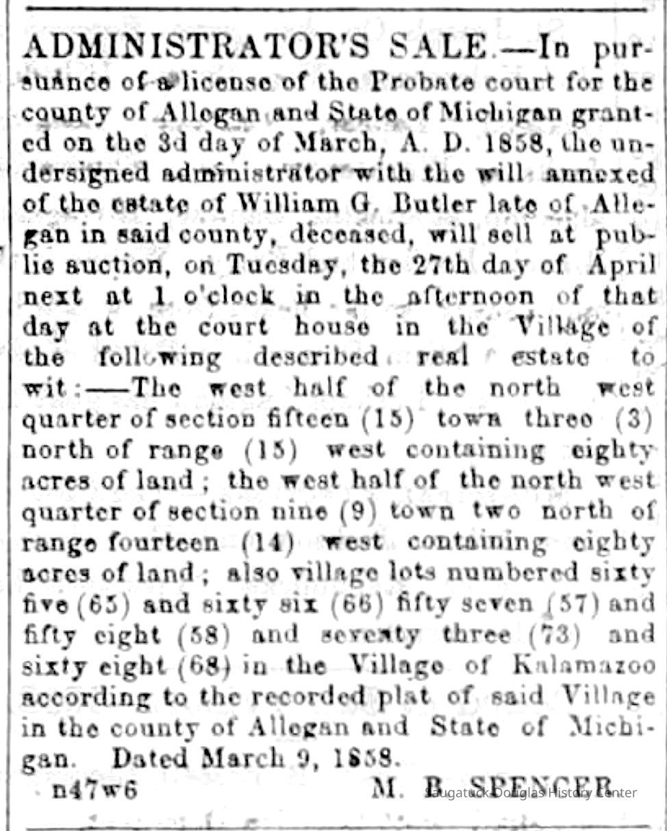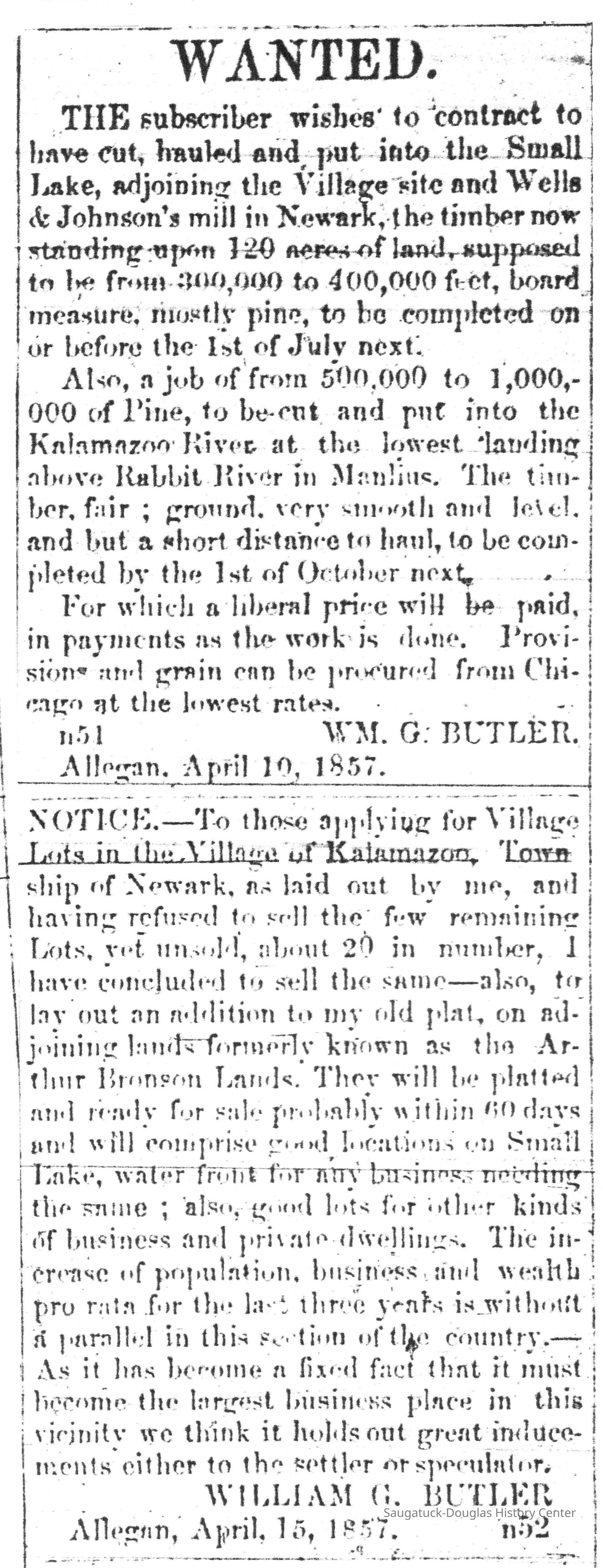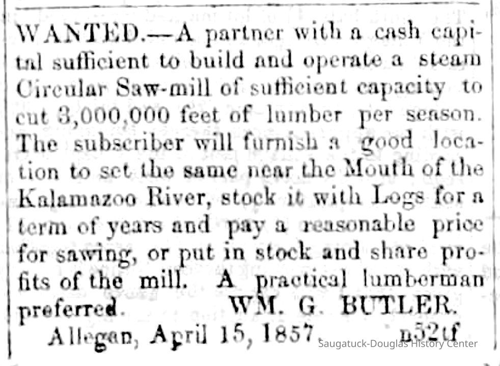 As more public records become available on the web, interesting facts are coming to light about the land purchases of William G. Butler, who, with his wife, Mary, and two children were the first settlers in Allegan County, and the founders of Saugatuck.