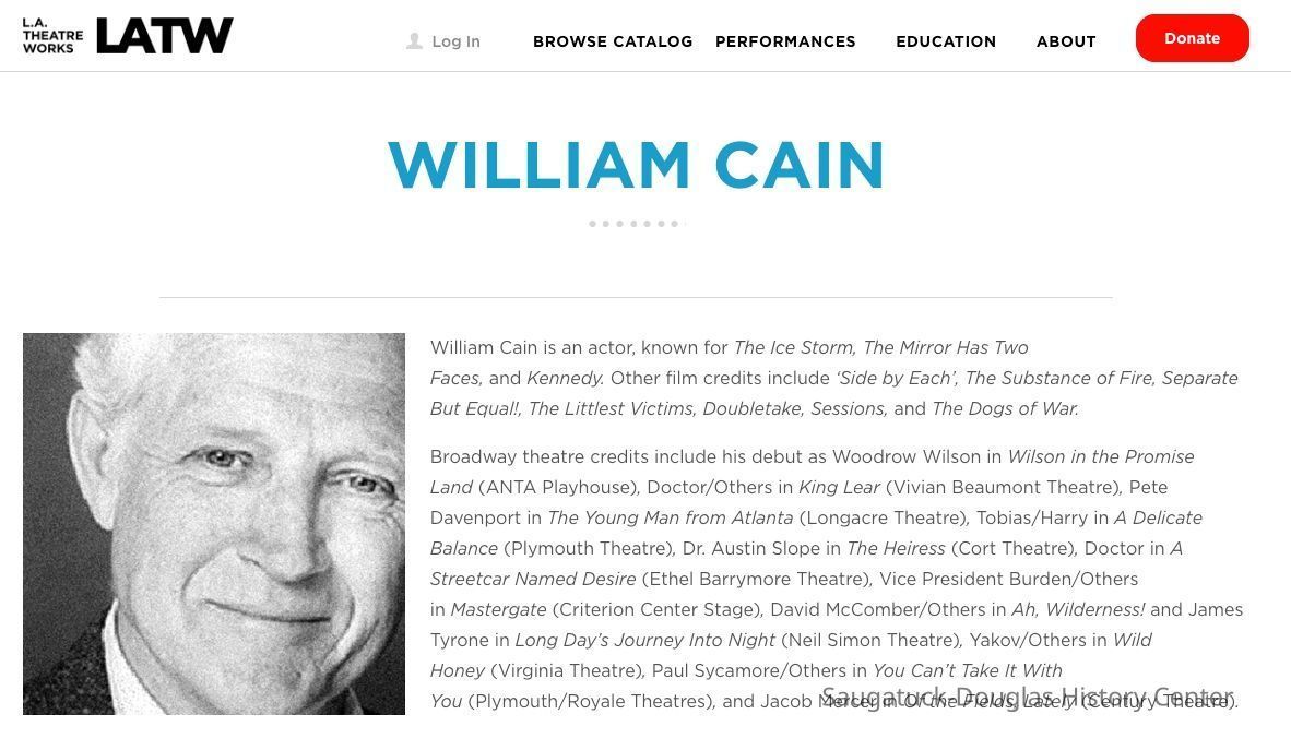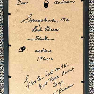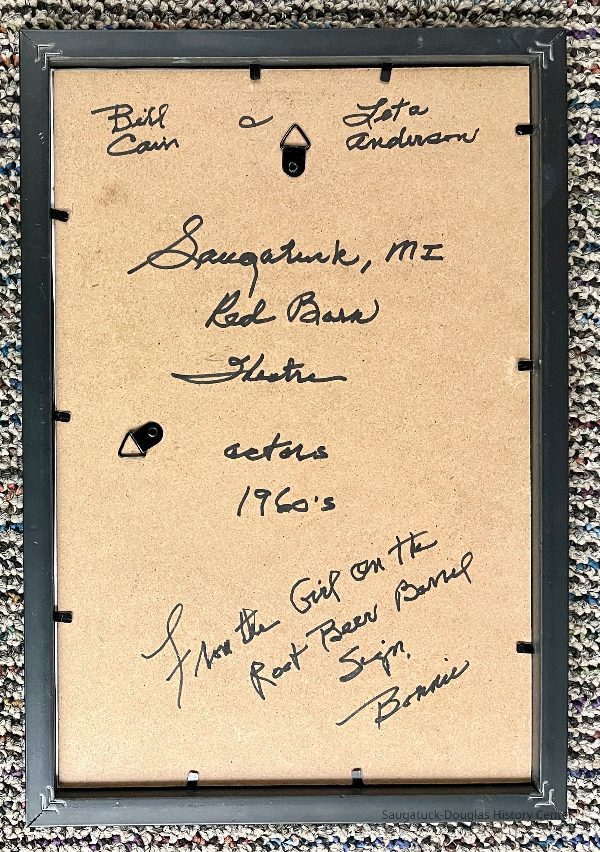 The picture was given to them by Bonnie (McVoy) Verwys. William Cain (born 1931) married Leta Anderson and went on to have a long career on stage and in film and television.Collection