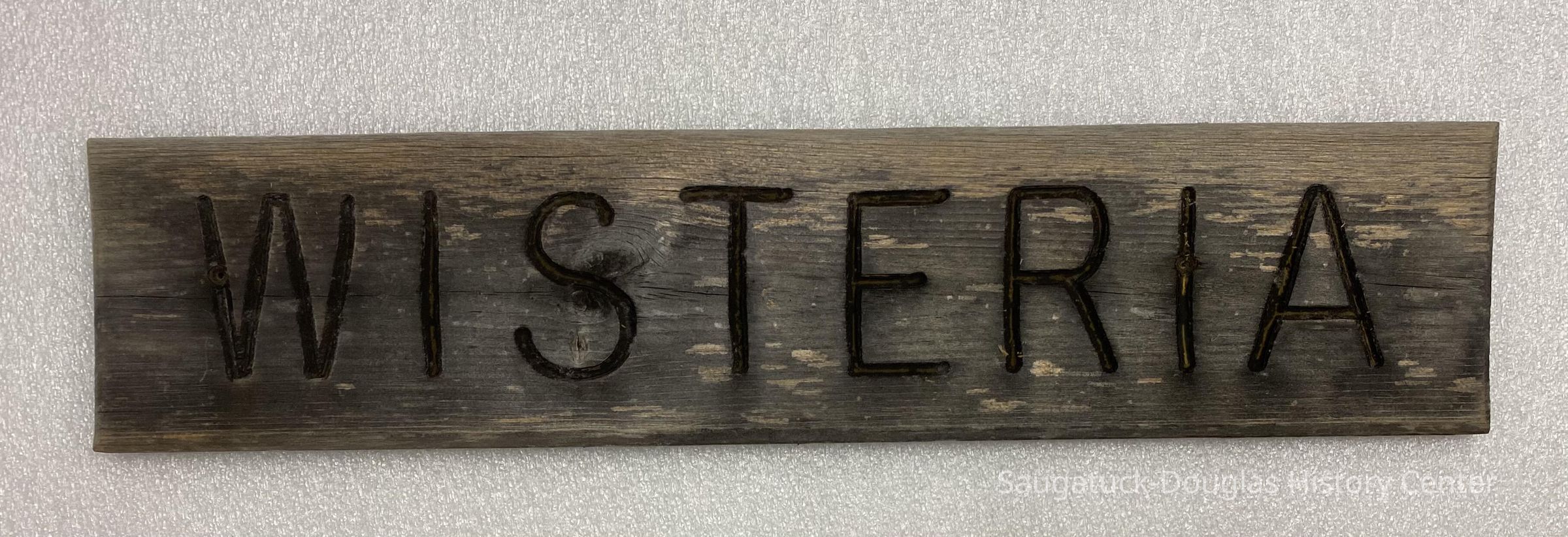 24"x5" wooden sign that was on the cottage "Wisteria" at the Presbyterian Camp in SaugatuckContext