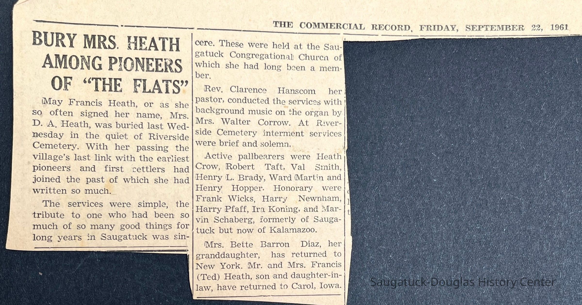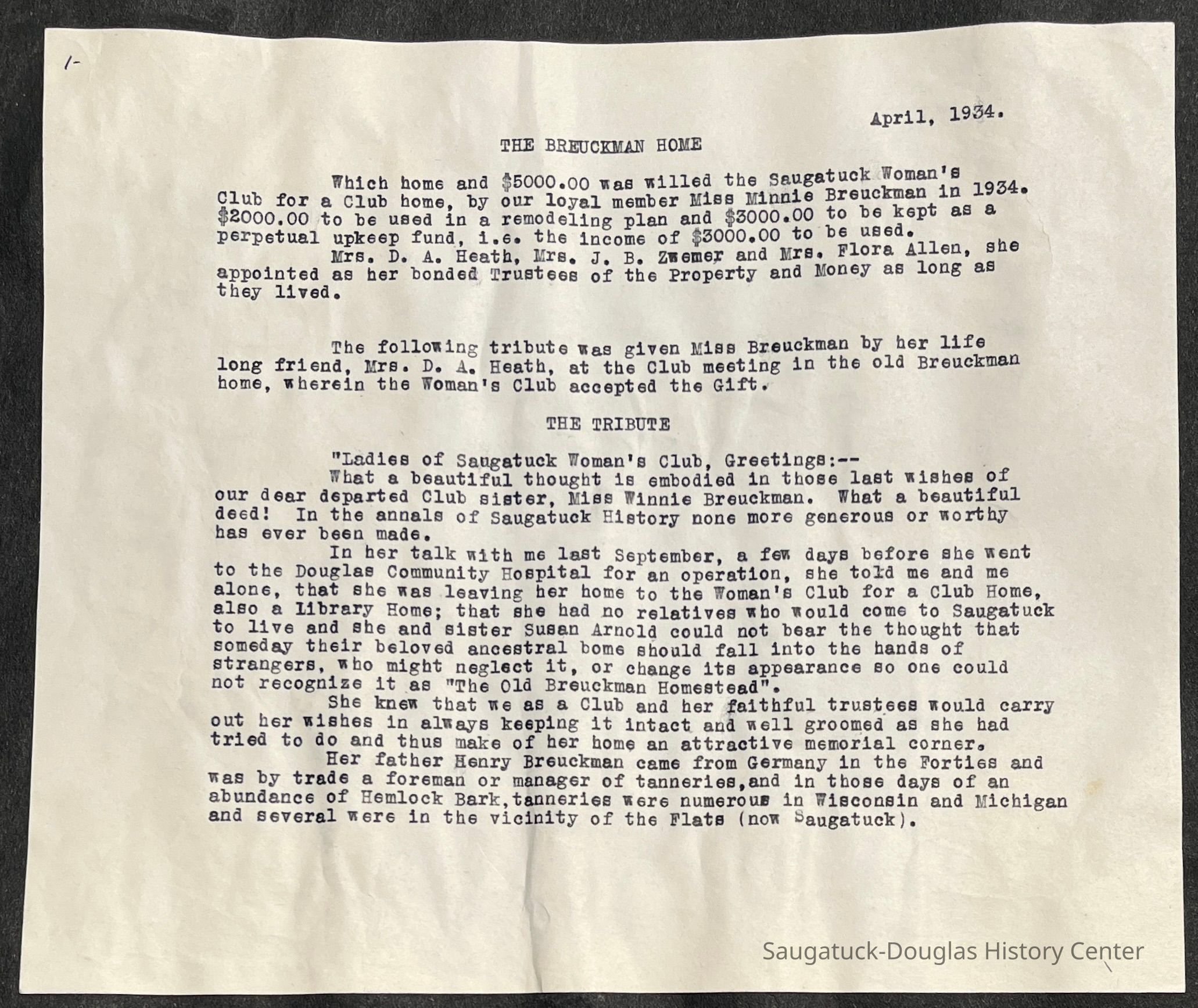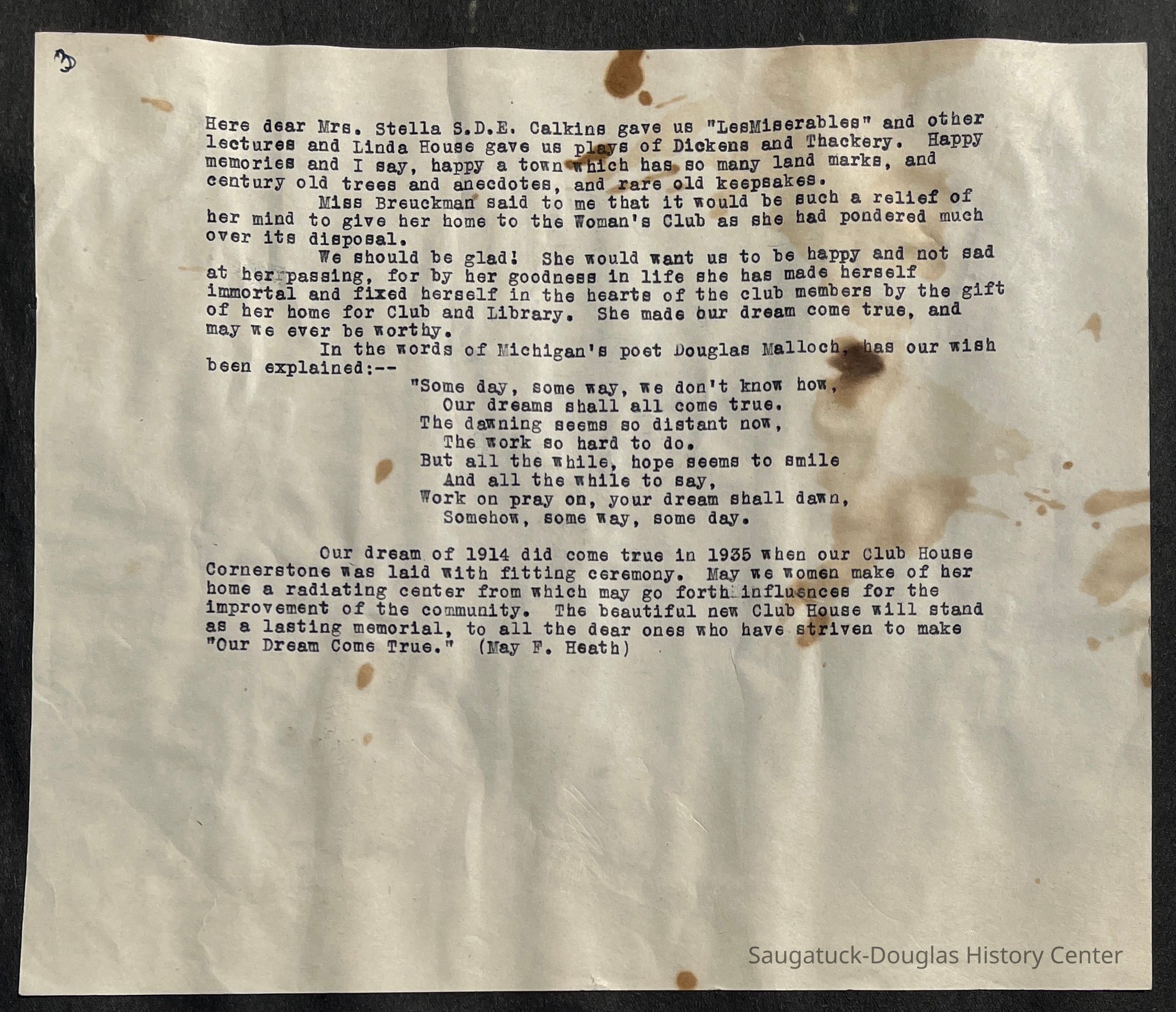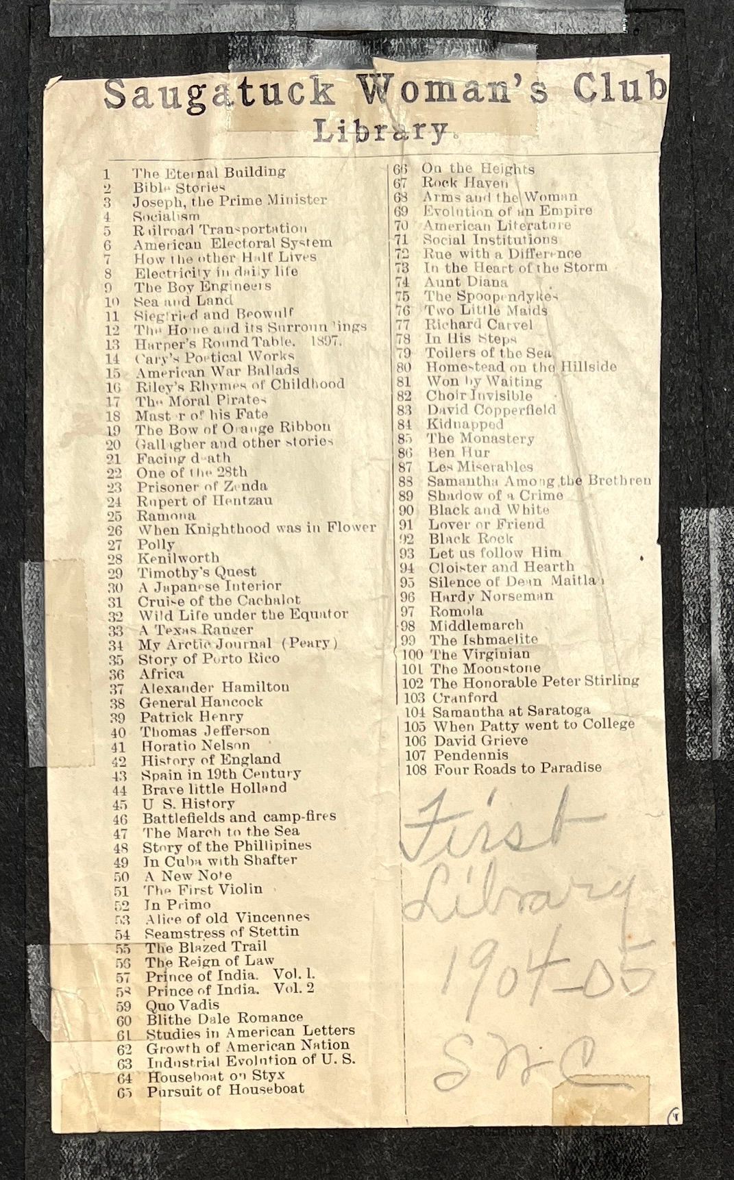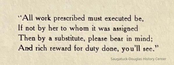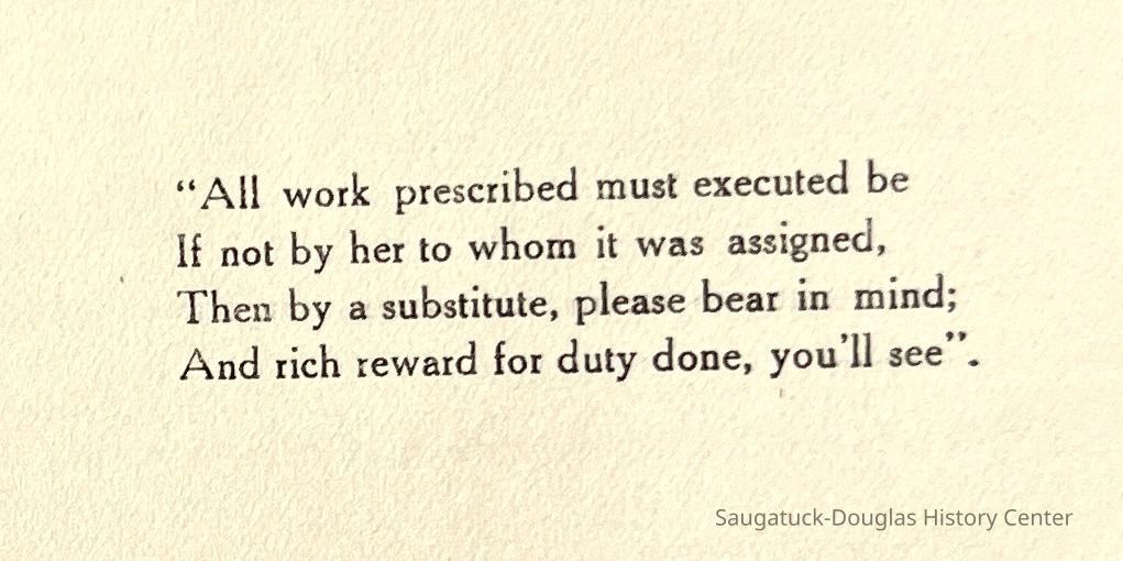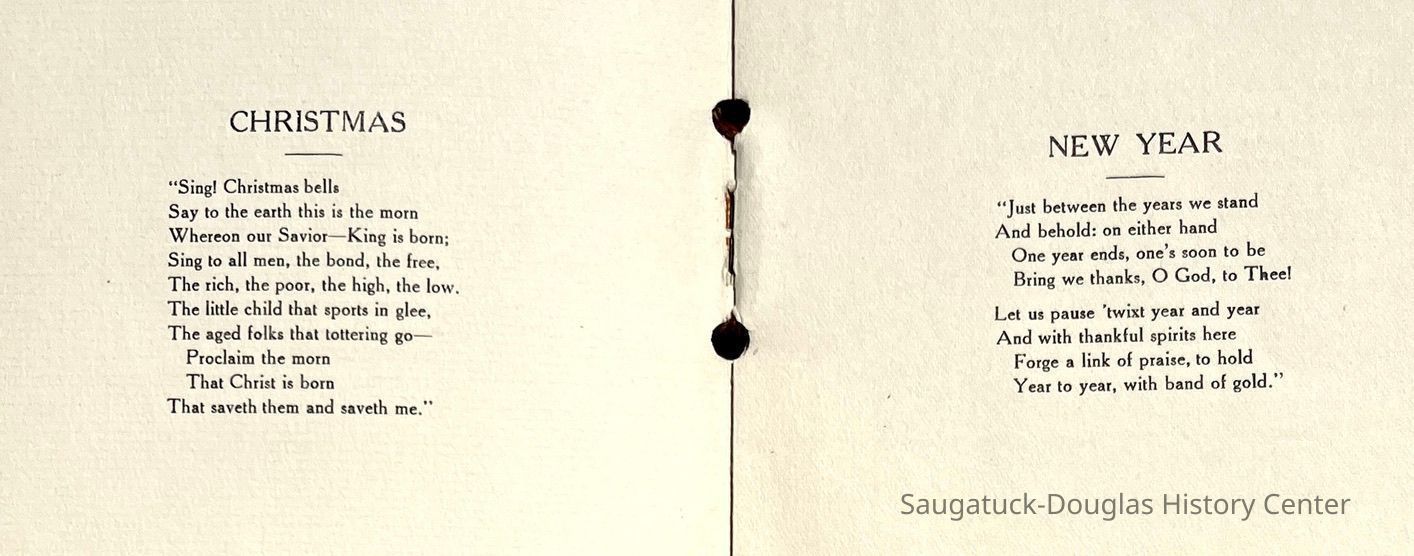 Saugatuck Woman's Club 1904-present, Saugatuck Woman's Club auditorium 1935-present, Heath, May (Francis) 1873-1961, Bird, Harriet “Hattie” Louise (Moffat) (Wright) 1855-1944, Breuckman, Minnie 1869-1934, Coates, Adella "Della" (Holmes) 1864-1950, Thomson, Jeanette Elvira (Harris) 1862-1956, Fox, Johnson 1918-2009, Hodge, Emma Ursula (Gunzenhauser) 1864-1950, Dailey, Margaret, E. (Calkins) 1866-1940, Zwemer, Saburna G. (Woodworth) 1875-1949, Henry, Isabel (Shore) 1856-1936, Woodworth, Alice C. (Redway) Mather 1848-1930, 439 Butler/Butler Pantry/Wilkins/Koning/Nies Hardware, Allen, Flora Elizabeth (Sprang) 1863-1943, Walker, Adelaide Elizabeth (Wade) 1885-1932, Goshorn, Hattie Louise (DePuy) 1874-1953, House, Celia Martin (Gamble) (1890-1976), Millar, Nellie Grant (Raymond) 1861-1956, Jackson, Rhea Bernice (Allen) 1892-1979, Leland, Ruth F. (Baker) 1878-1949, Comey, Alice Maude (Grant) 1870-1944, Davis, Edna Mae (Gaylord) 1896-1980, Wilson, Grace (Cobb) 1897-1992, Sheridan, Irene (Weible) 1883-1967, Waddell, Sadie R. 1882-1947, Wicks, Caroline Jane "Carrie" (Millar) Stillson 1884-1983, Hoffman, Elizabeth S. "Betty" (Gregory) 1894-1960, Brady, Winifred E. (Randall) 1893-1961, Peirce, Roberta "Bobbie" Margaret (Fredrickson) 1914-2004, Carr, Elsie Virginia (Kaufman) 1906-1997, Bieler or Beler, Mrs. Ernest 1904-1954?, Bainbridge, Marguerite (Holladay) 1888-1974, Edgcomb, Ruth M. (Severance) 1915-1997, Taylor, Mrs. Harold