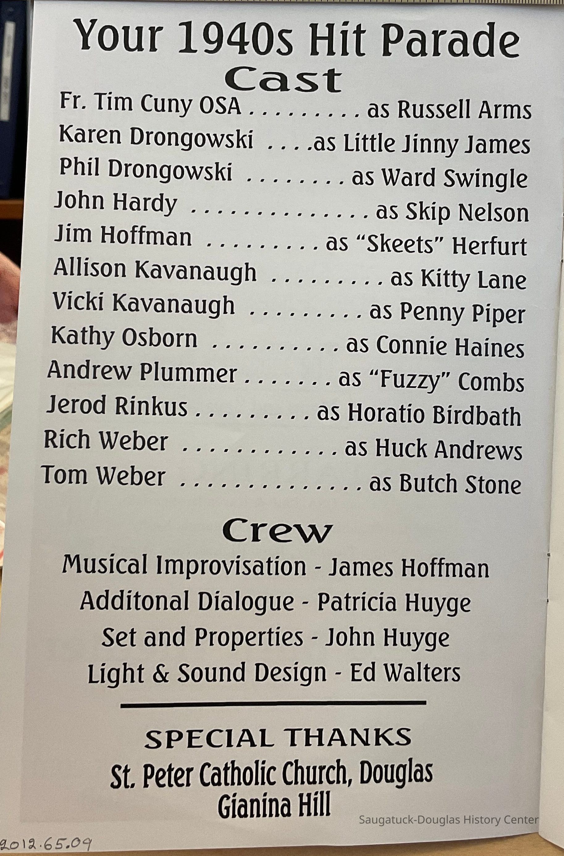 This program from the Red Barn Players is from Christmas 2010 when a program was given at the Saugatuck Brewing Co. titled, Your 1940s Hit ParadeCollection