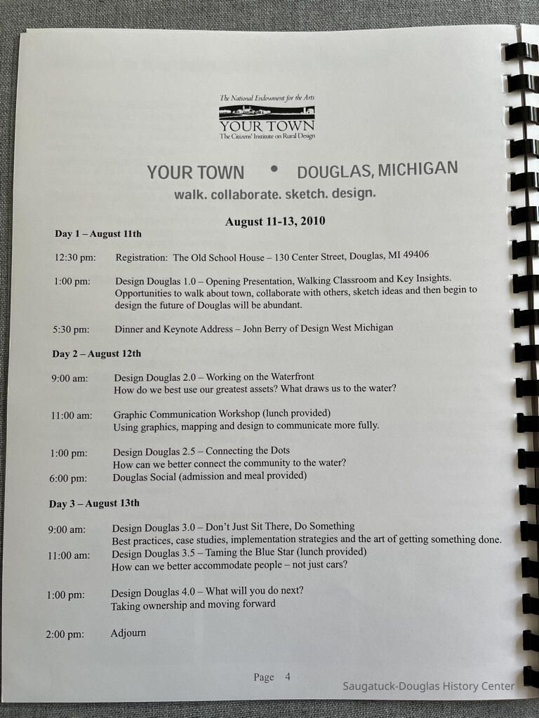 Agenda for "Your Town - Douglas, Michigan" Aug. 11-13, 2010 by the Citizens' Institute for Rural Design