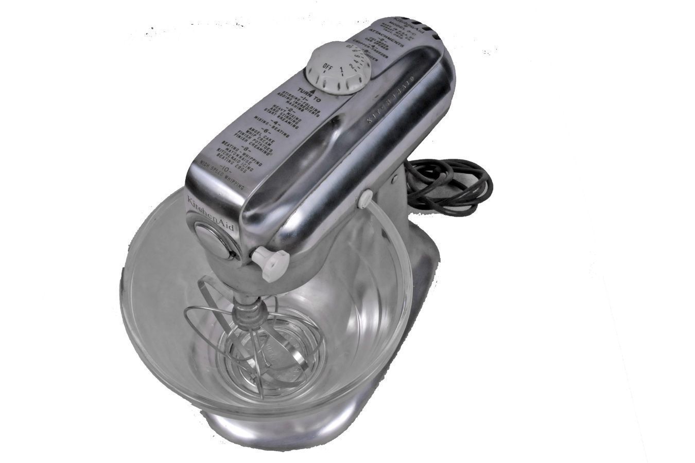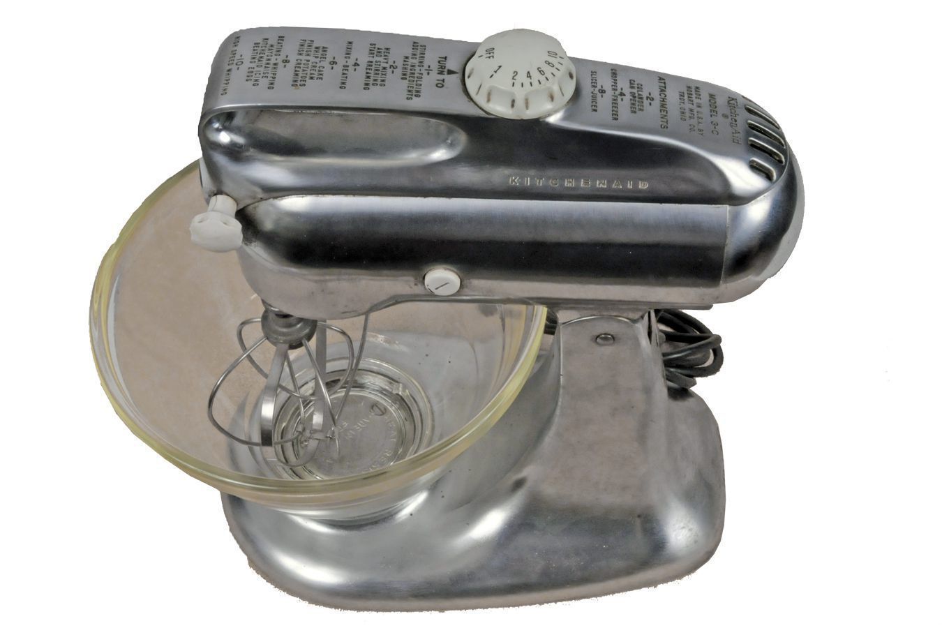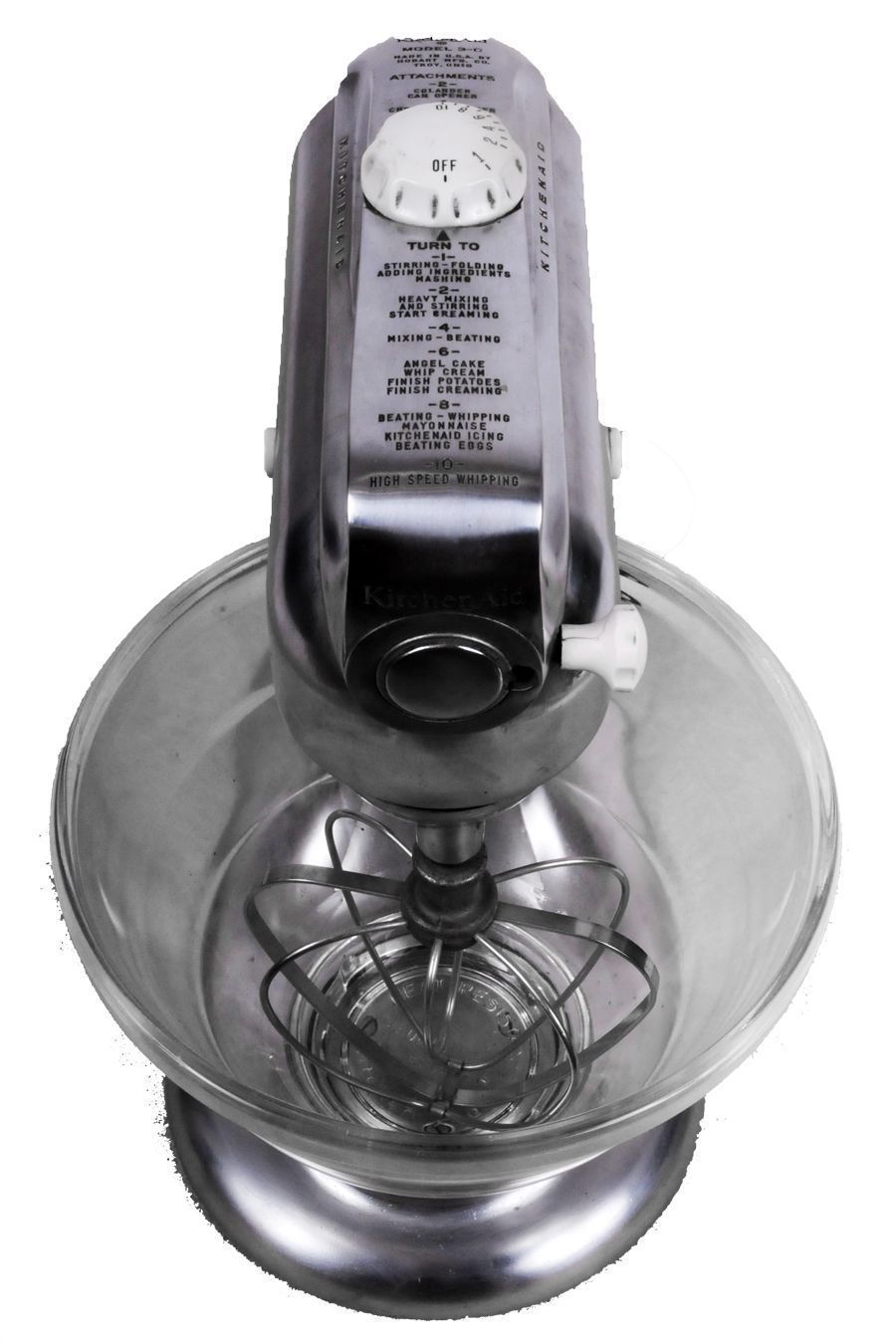 With Whisk attachment and Pyrex Bowl 10 speed adjust
