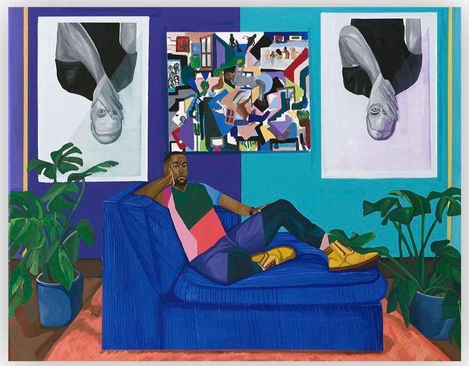 Although johnson's works are grounded in figures and portraiture, he intentionally avoids realism in his paintings. He uses his art to scrutinize the suppression of Blackness in society, which he sees as a form of activism and dissent.Label