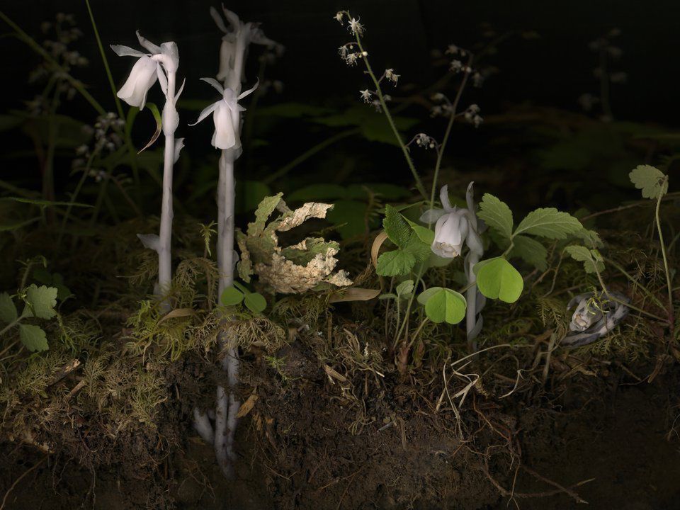 Ghost Pipes was created in The Hoh Rain Forest, located in Washington's Olympic National Park. Here flora and fauna illustrate that we are always tied to migration, evolution, and metamorphosis. In addition to a camera, Hurst Frye uses a flatbed scanner to capture a curious perspective, and light.Label