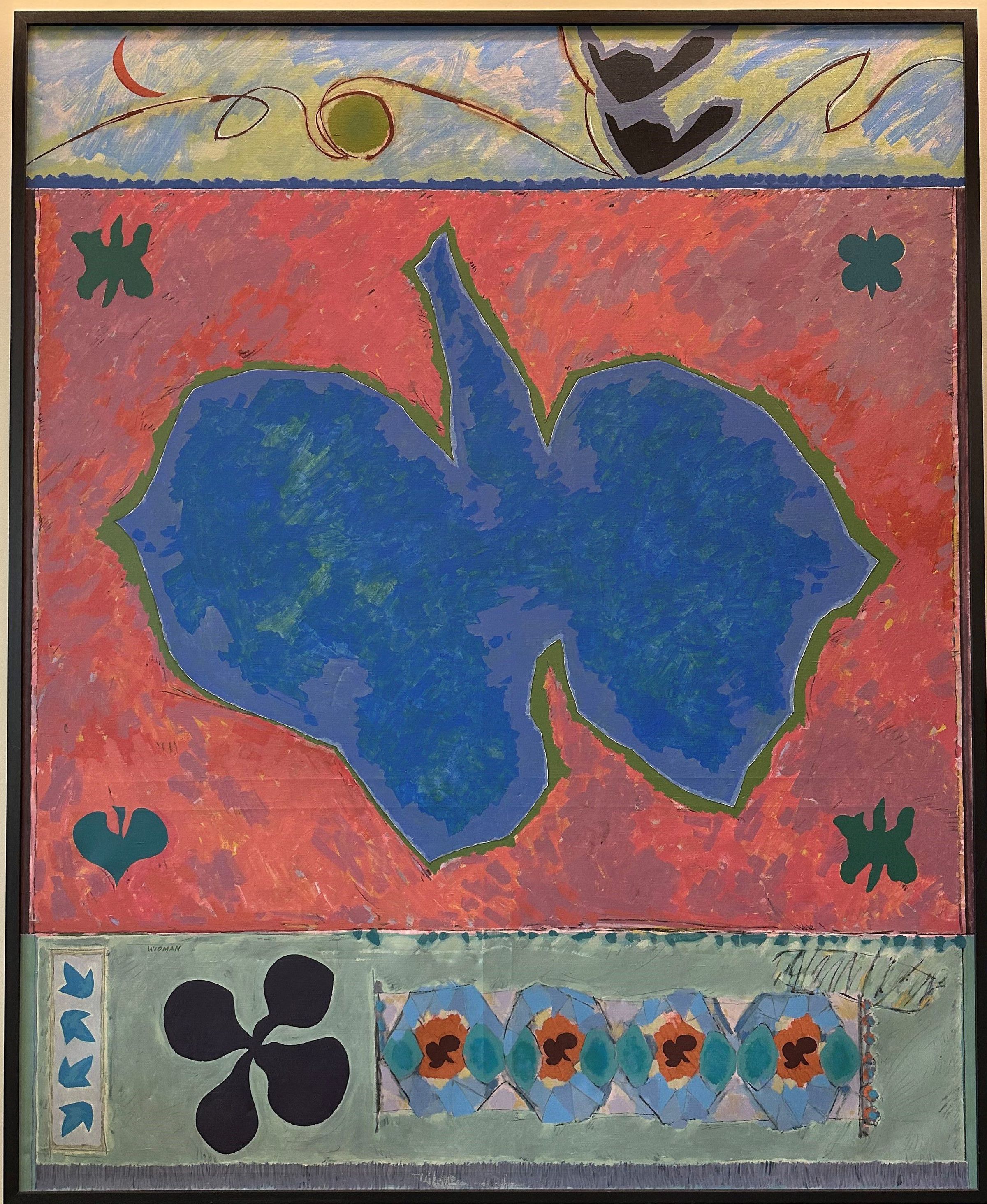 The Magician, a winged and vibrant, journeying spirit fighting to free itself from the colorful confines of its canvas background and float, unencumbered, away into the ether, is a recurring image in the artist's work.