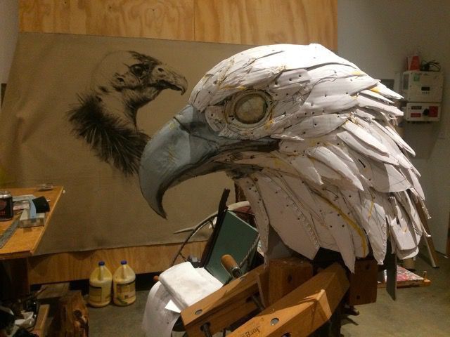 Exhibition description; "Traver Gallery is excited to welcome Scott Fife back to the gallery for his second exhibition, Cardboard Kingdom. For his new show, Fife presents a series of large-scale and improbably intimate portraits of large, mythic beasts; animals whose character and history animate our folktales and fill our collective imagination. Built by hand using cardboard and glue in his Vashon Island studio, Fife’s remarkably detailed and tactile sculptures invite us to contemplate the potent relationship between human and animal realms. He says of this new body of work, “Physically beautiful; we endear these animals with many meanings. But they are predators and prey in a brutal world. These are portraits of individuals as they are in nature, balancing survival.