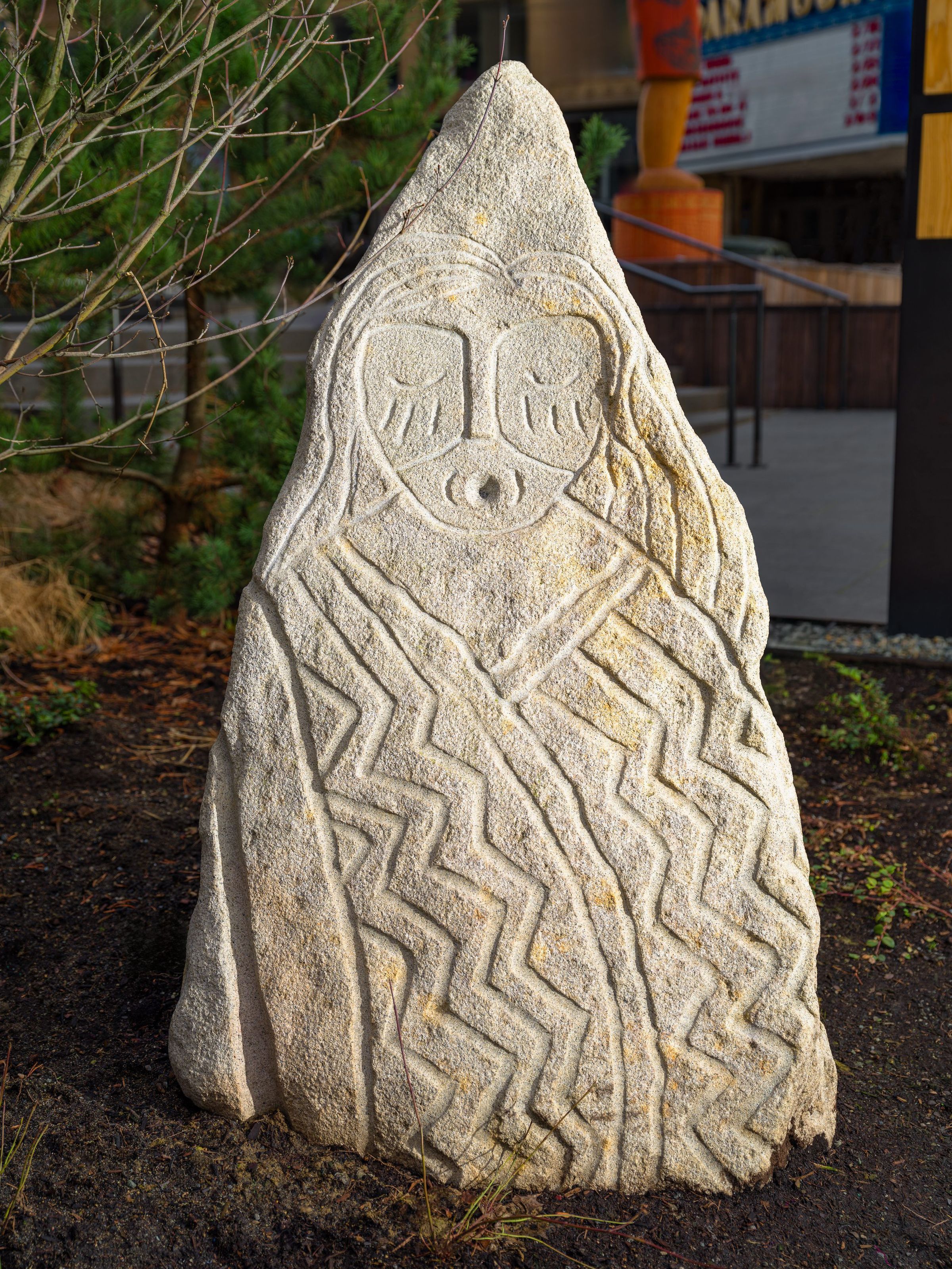 face of a Thunderbird onto a boulder. It is said that if someone lifted the stone and shook