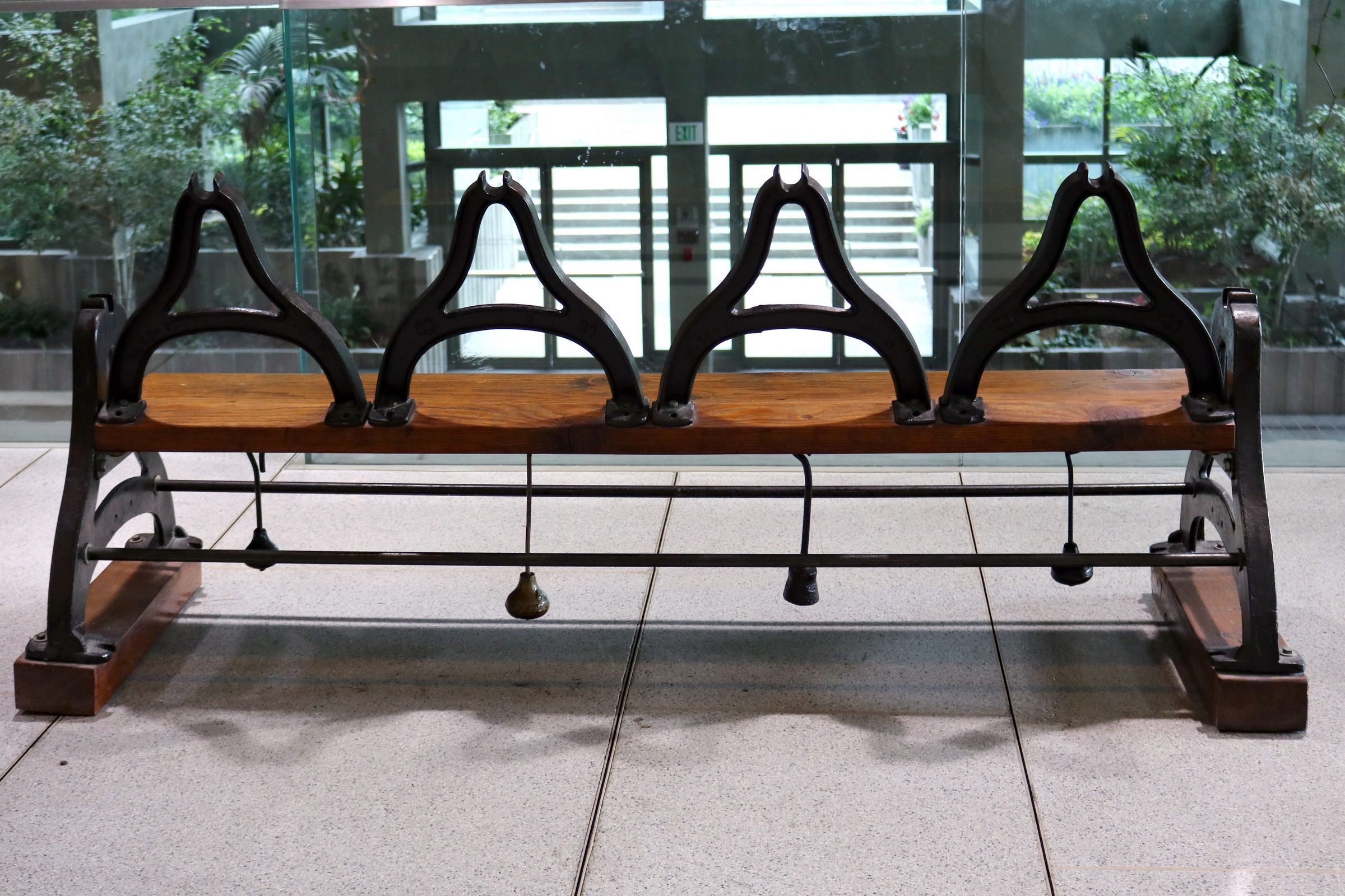 Centennial Bell Garden Benches are a series of fives benches located at the Washington State Convention Center. Artist David Mahler combined bell yokes and other bell parts with found seating, including a tractor seat, wooden plans, and padded chair seats. He created the benches from materials left over from his 1989 installation, Centennial Bell Garden. The original installation displayed 39 different historical bells from each Washington County in celebration of the state's centennial.