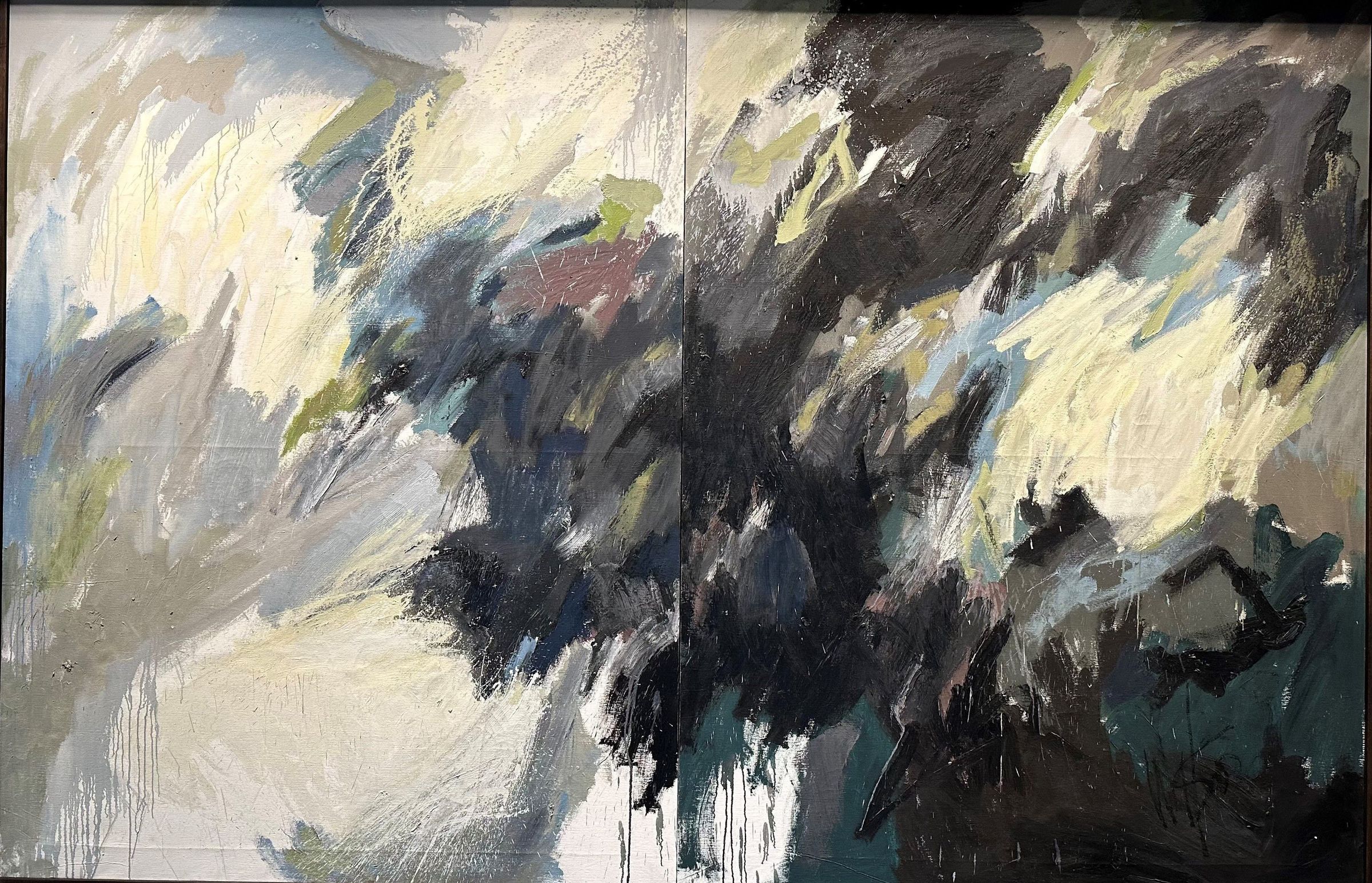 Thomas T. Wilson has been called the best-known unknown artist in the Northwest. His originality was revealed in his vibrant landscapes and cloudscapes inspired by the dramatic environment of the Pacific Northwest. He painted this moody sky diptych while living in Port Townsend, where he was fully involved in its artistic and cultural revival and considered his most productive period. The artist’s bold brush strokes evoke an intense storm, painted in white, blue, black and umber colors. He was a Washington State Convention Center art advisor and foundation member 2002-2009.
