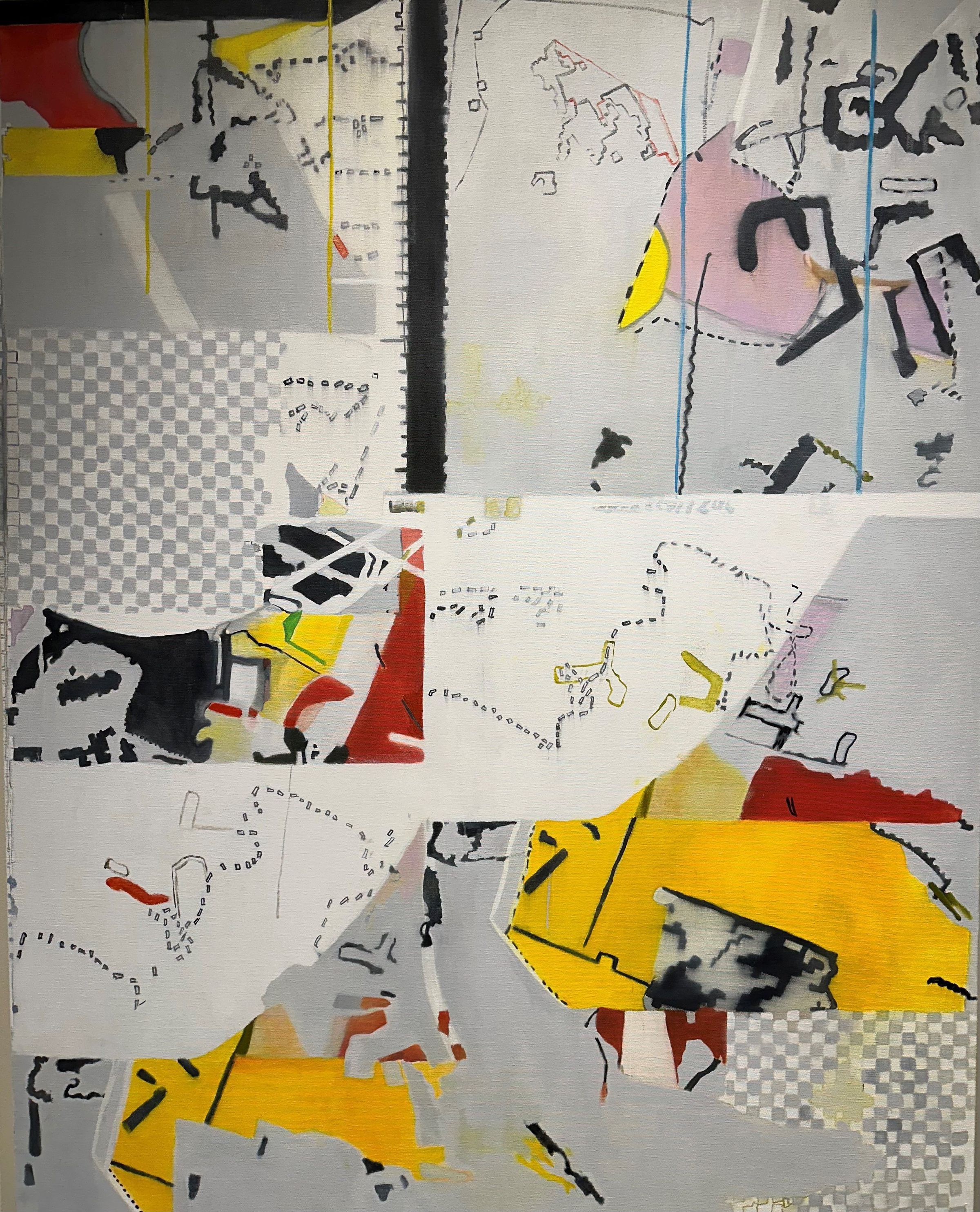 Buchanan's abstract imagery is a mix of line, pattern, and color, sometimes seeming frenetic while at other times calm.