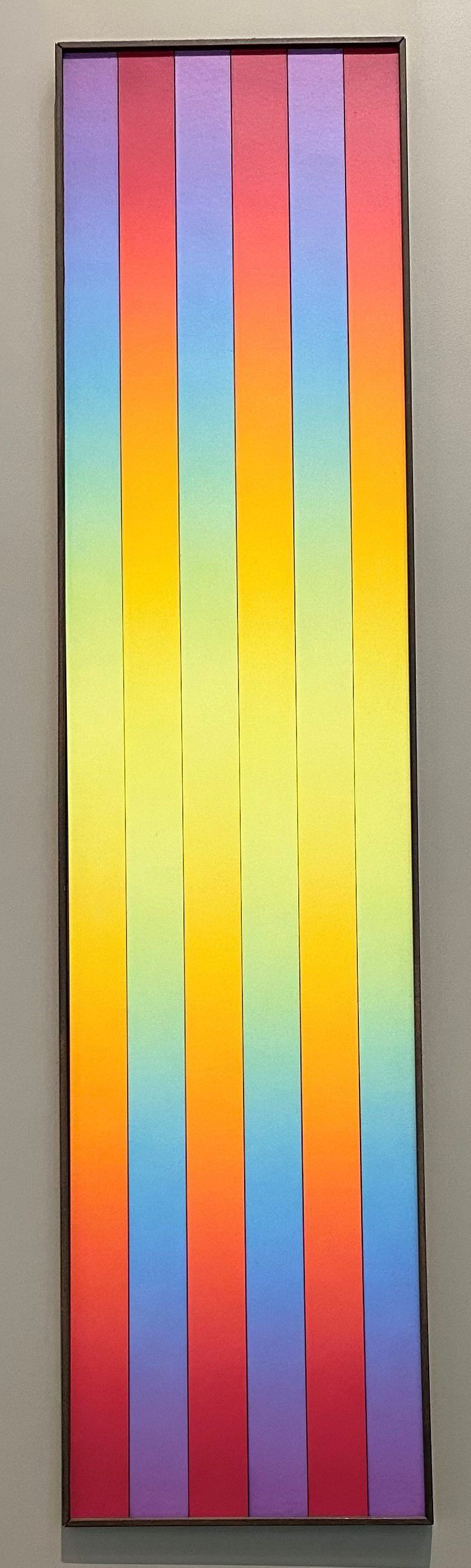 As a reaction to his earlier black and white work, Celantano explored the tension of color through it's interactions. His Spectrum series utilizes bands of gradient colors, alternating inversely so the visual effect, fixed to the center, is more intense.