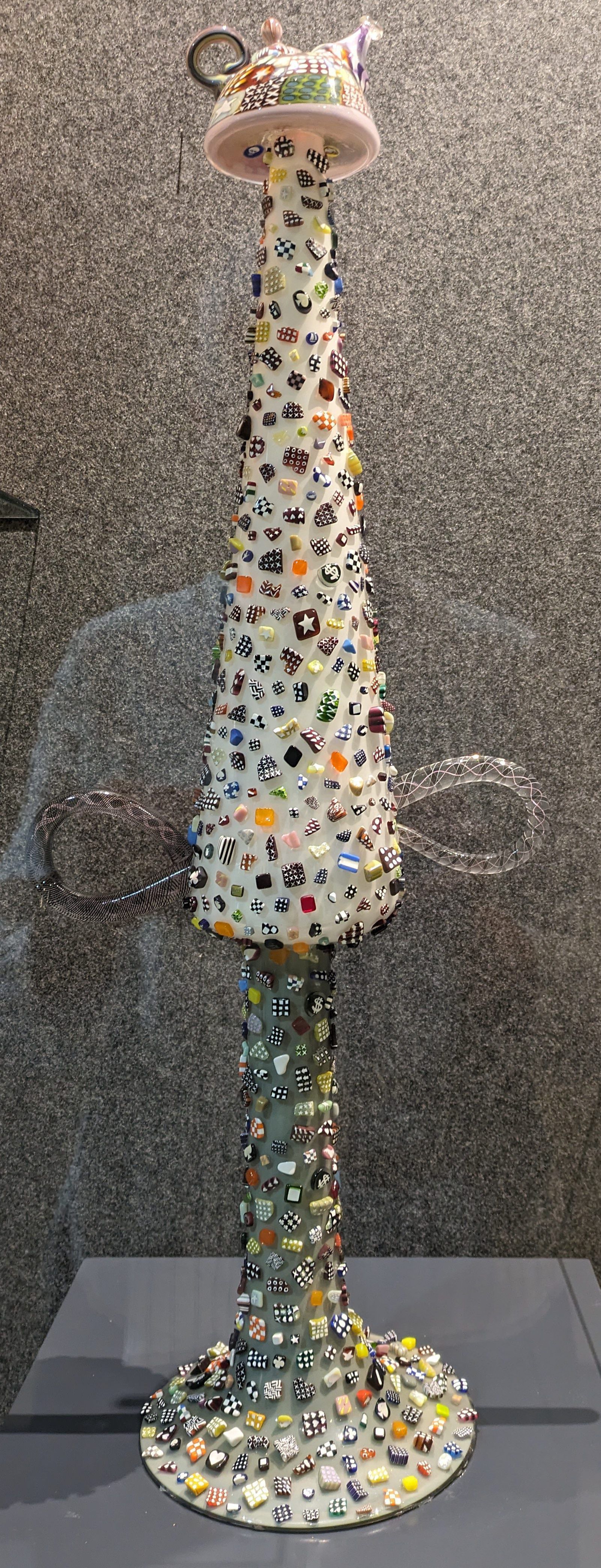 Richard Marquis is largely responsible for carrying classic, Italian, glassblowing techniques into a modern and international limelight. Infusing a sense of whimsy with the delicate craftsmanship of Italian glassblowing, his artwork has inspired a movement of modern glassblowers. He has improvised on the theme of a teapot throughout his career. This example is decorated with murrini, cut glass cane with colorful patterns.