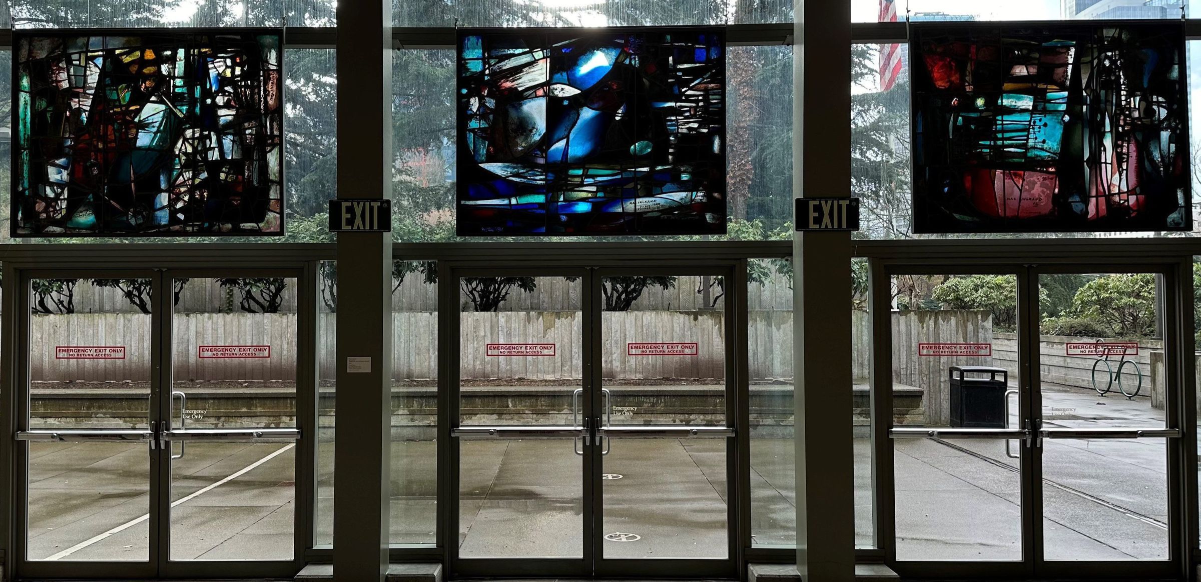 The windows were designated for placement over the southern doors of the vestibule between the Opera House and the Exhibition Hall at the Seattle Center. They were removed in 2001 to make way for the new Opera House construction.