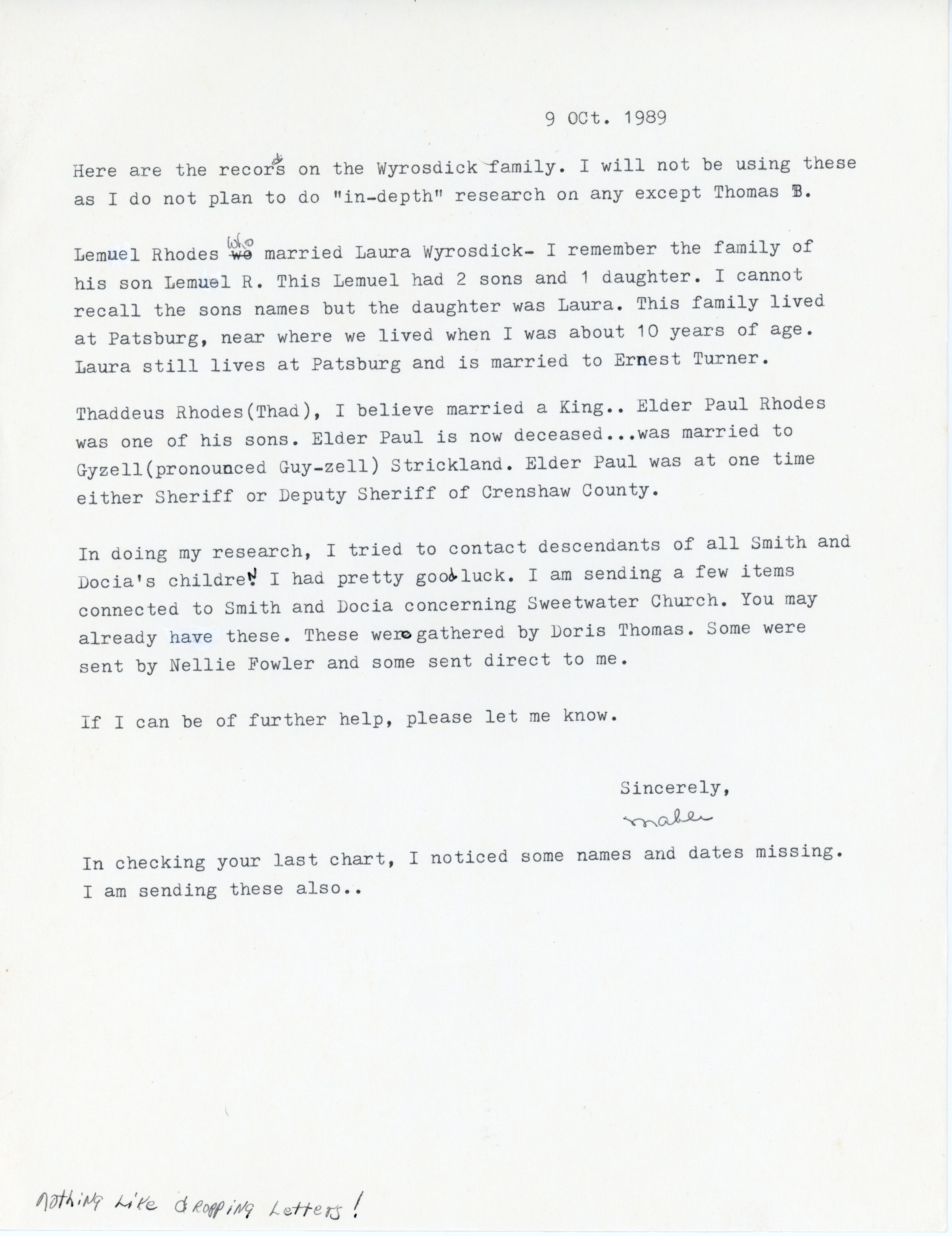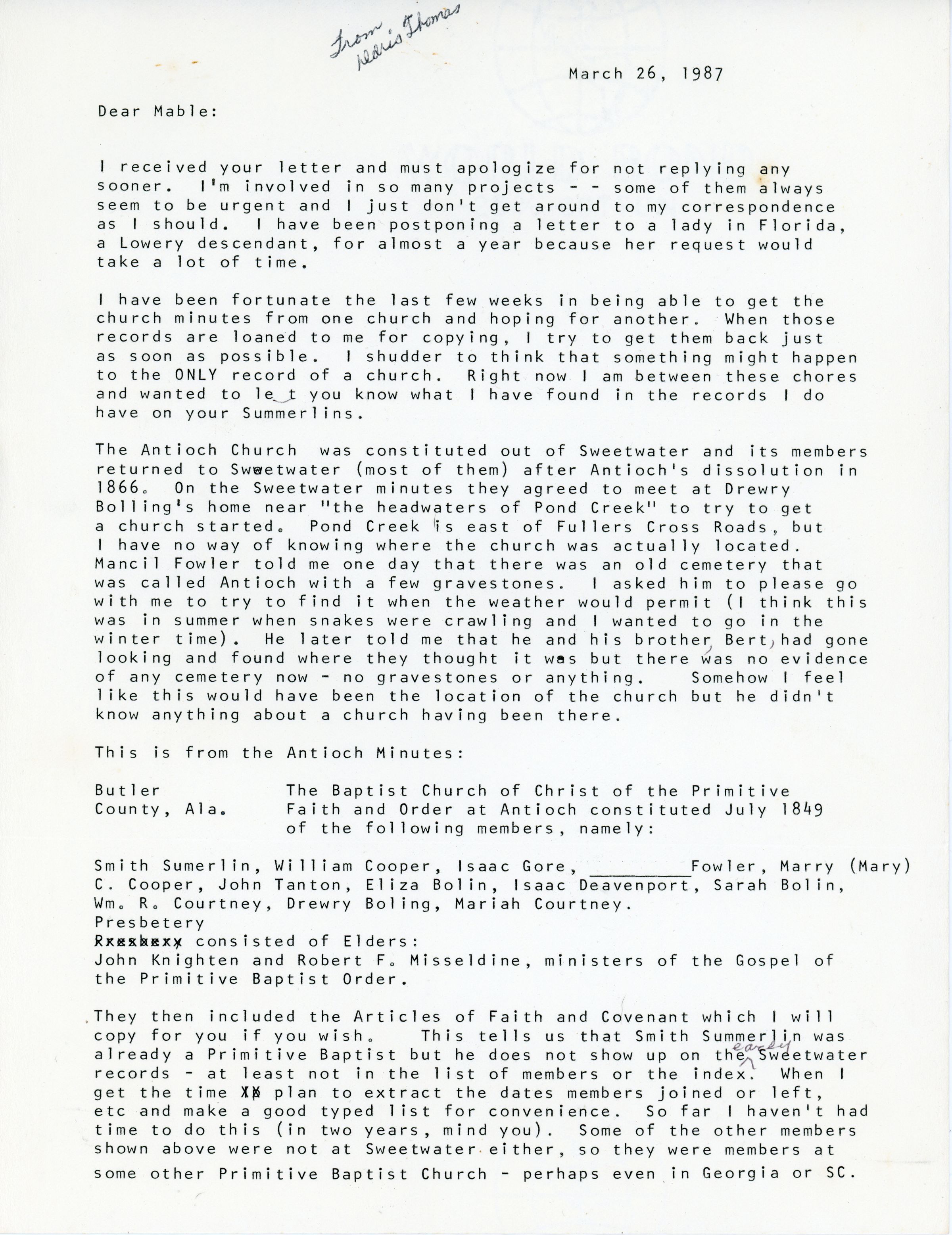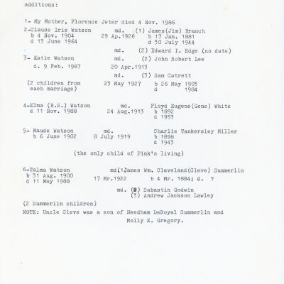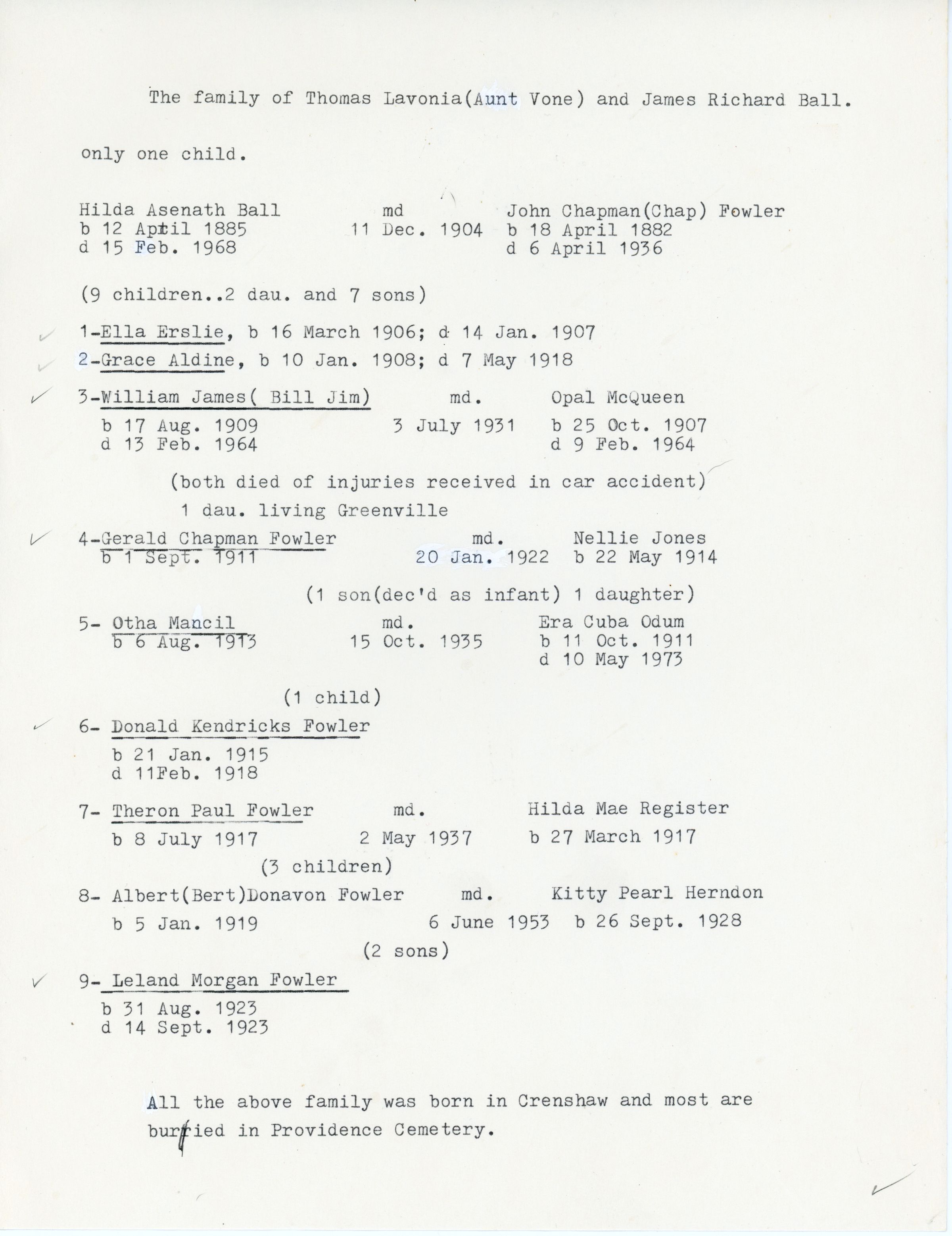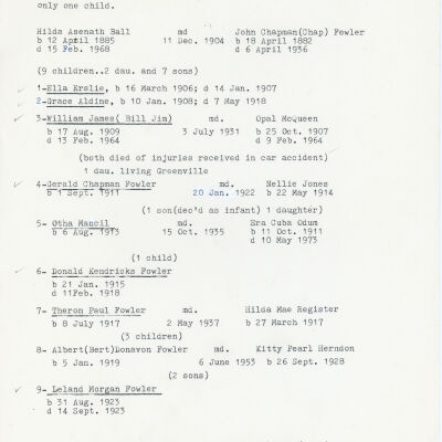 Docia Summerlin, Smith Summerlin, Elizabeth Summerlin, James Lowery, Walter J. Dunklin, Drewry Bolling, William Cooper, Isaac Gore, Mary C. Cooper, John Tanton, Eliza Bolin, Sarah Bolin, Willam R. Courtney, Isaac Deavenport, Mariah Courtney, John Knighten, Robert F. Misseldine, Lemuel Rhodes, Laura Wyrosdick, Ernest Turner, Thadeus Rhodes, Paul Rhodes, Gyzell Strickland, Doris Thomas, Mable, Pink Summerlin, George W. Watson, Florence Jeter, Claude Iris Watson, James Branch, Edward Edge, Katie Watson, John Robert Lee, Sam Catrett, Elma Watson, Floyd Eugene White, Maude Watson, Charlie Tankersley Miller, Talma Watson, Cleve Summerlin, Sabastian Godwin, Andrew Jackson Lawley, Needham Summerlin, Molly Gregory, Thomas Lavonia, James Richard Ball, Hilda Ball, Chap Fowler, Ella Erslie Fowler, Grace Aldine Fowler, Bill Jim Fowler, Opal McQueen, Gerald Fowler, Nellie Jones, Otha Mancil Fowler, Era Cuba Odum, Donald Kendricks Fowler, Theron Paul Fowler, Hilda Mae Register, Albert Donovan Fowler, Kitty Pearl Herndon, Leland Morgan Fowler