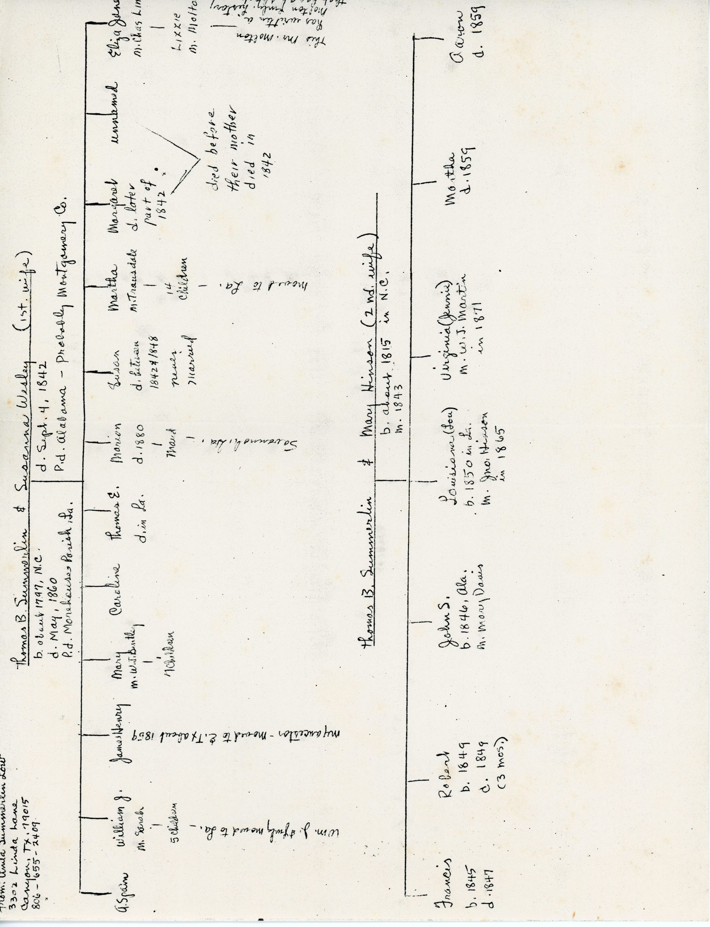 Thomas B. Summerlin, Susanna Wesley, Spain Summerlin, William J. Summerlin, James Henry Summerlin, Mary Summerlin, Caroline Summerlin, Thomas E. Summerlin, Marion Summerlin, Susan Summerlin, Martha Summerlin, Eliza Jane Summerlin, Charles Linn, Lizzie M. Molton, Mary Hinson, James Summerlin, Thomas Summerlin, John S. Summerlin, Louisiana Summerlin, Virginia Summerlin, Aaron Summerlin, Lou Summerlin, Jennie Summerlin