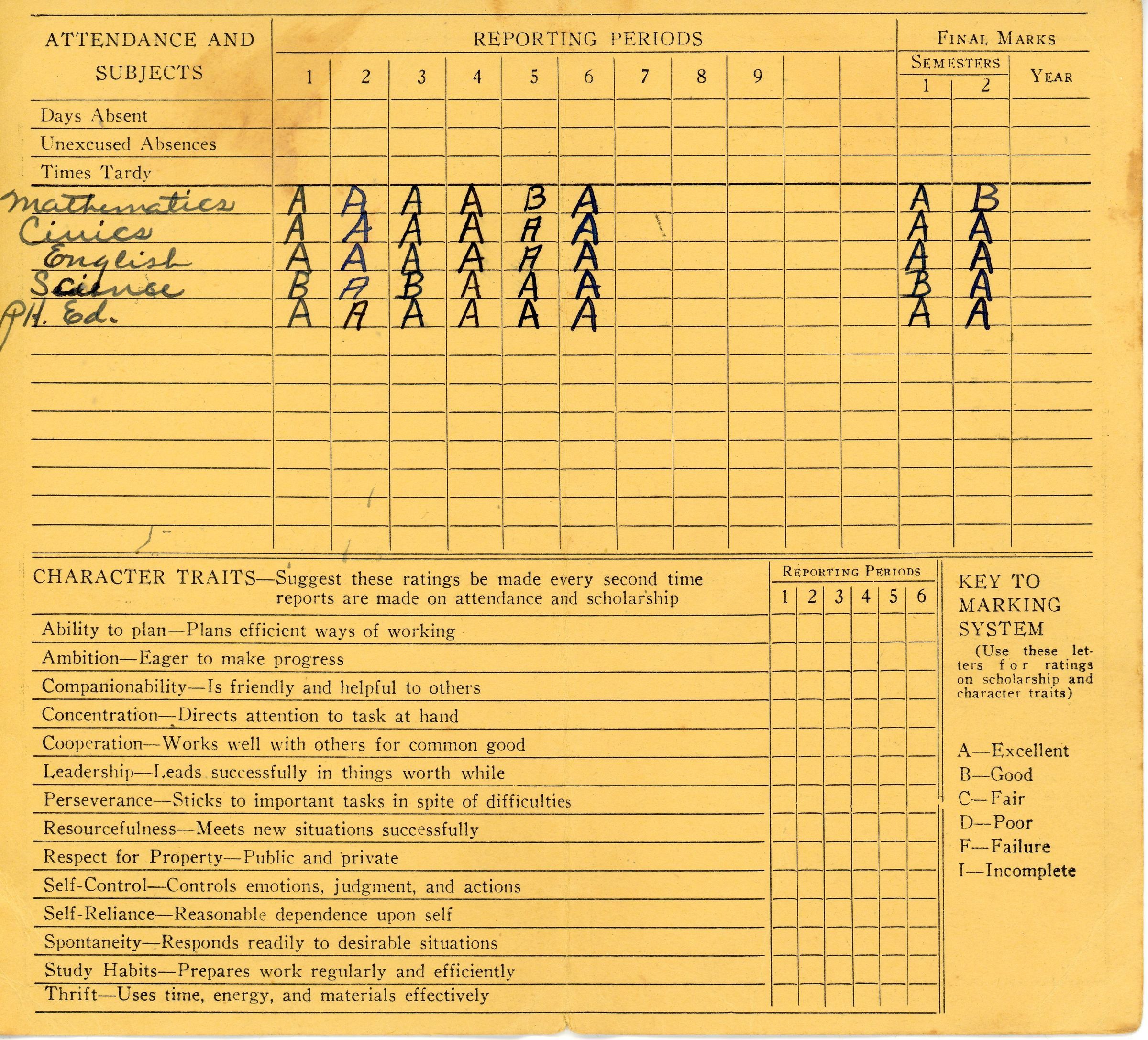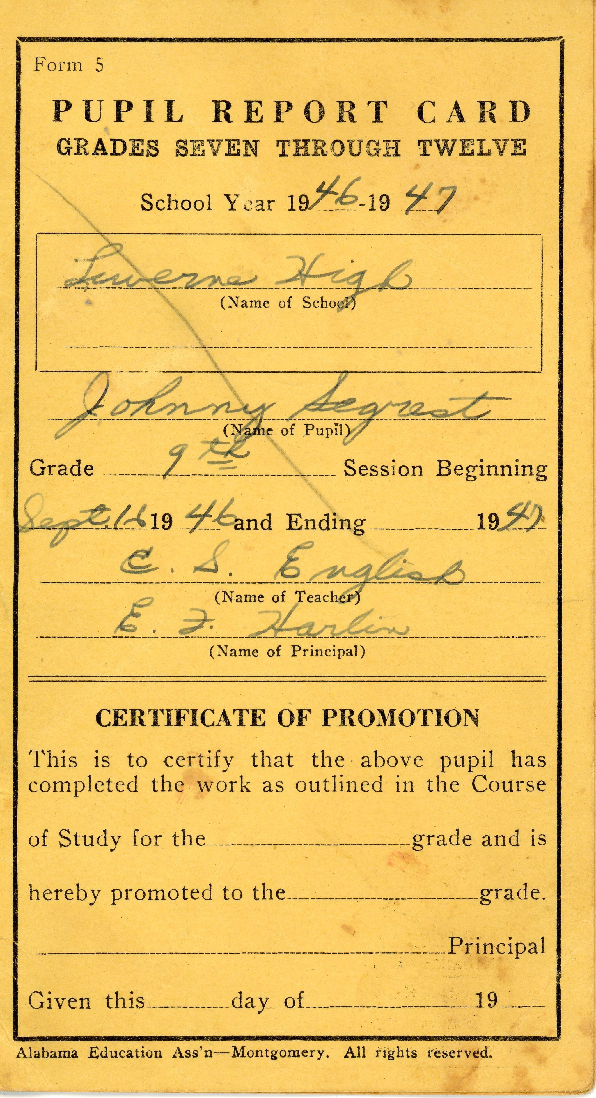 Pupil Report Card