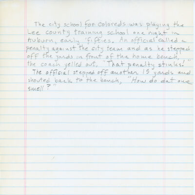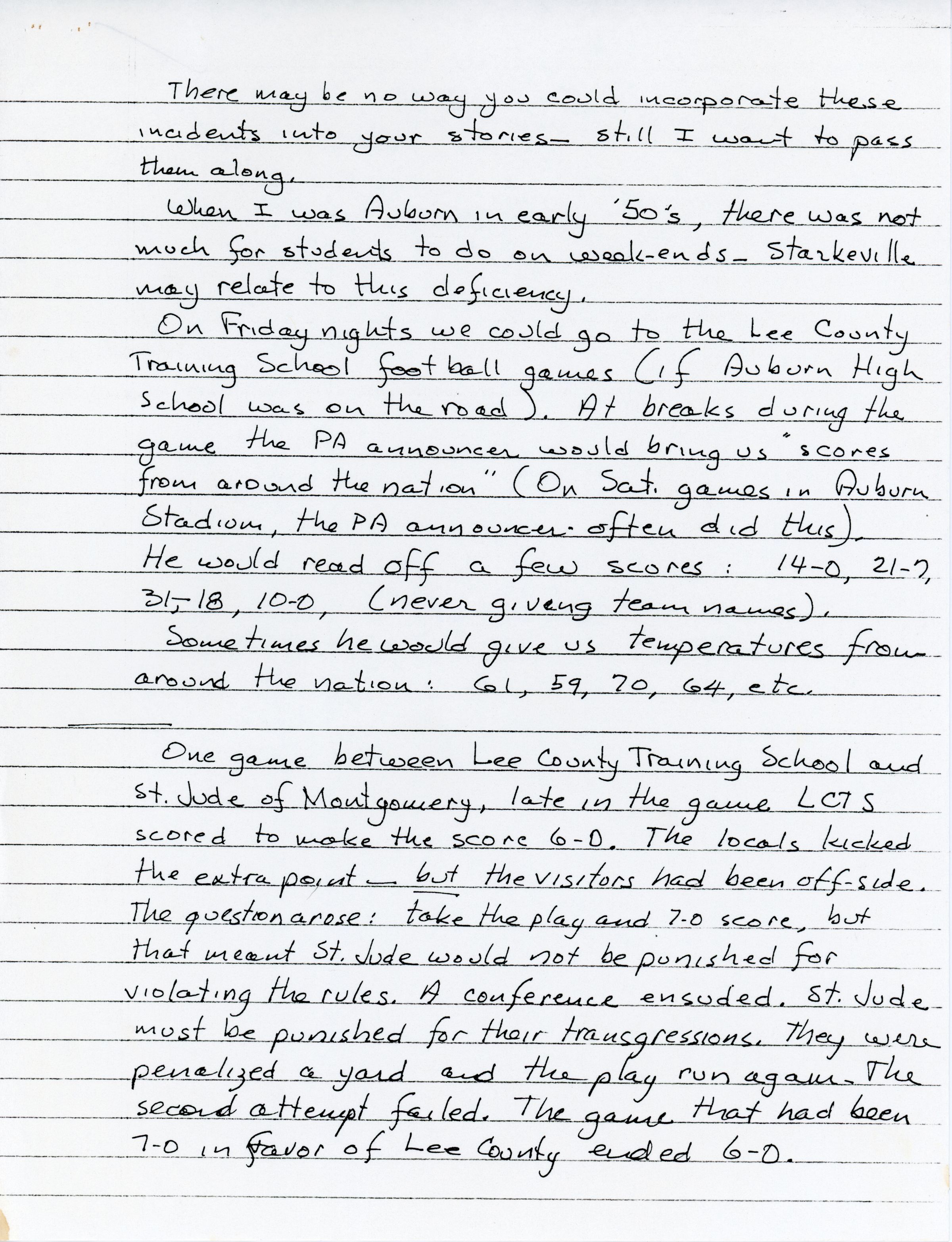 Luverne, Crenshaw County, Alabama, Auburn University, Auburn, Fuller's Crossroads, Emory University, Atlanta, Georgia, Lee County Training School, Lee County, Montgomery