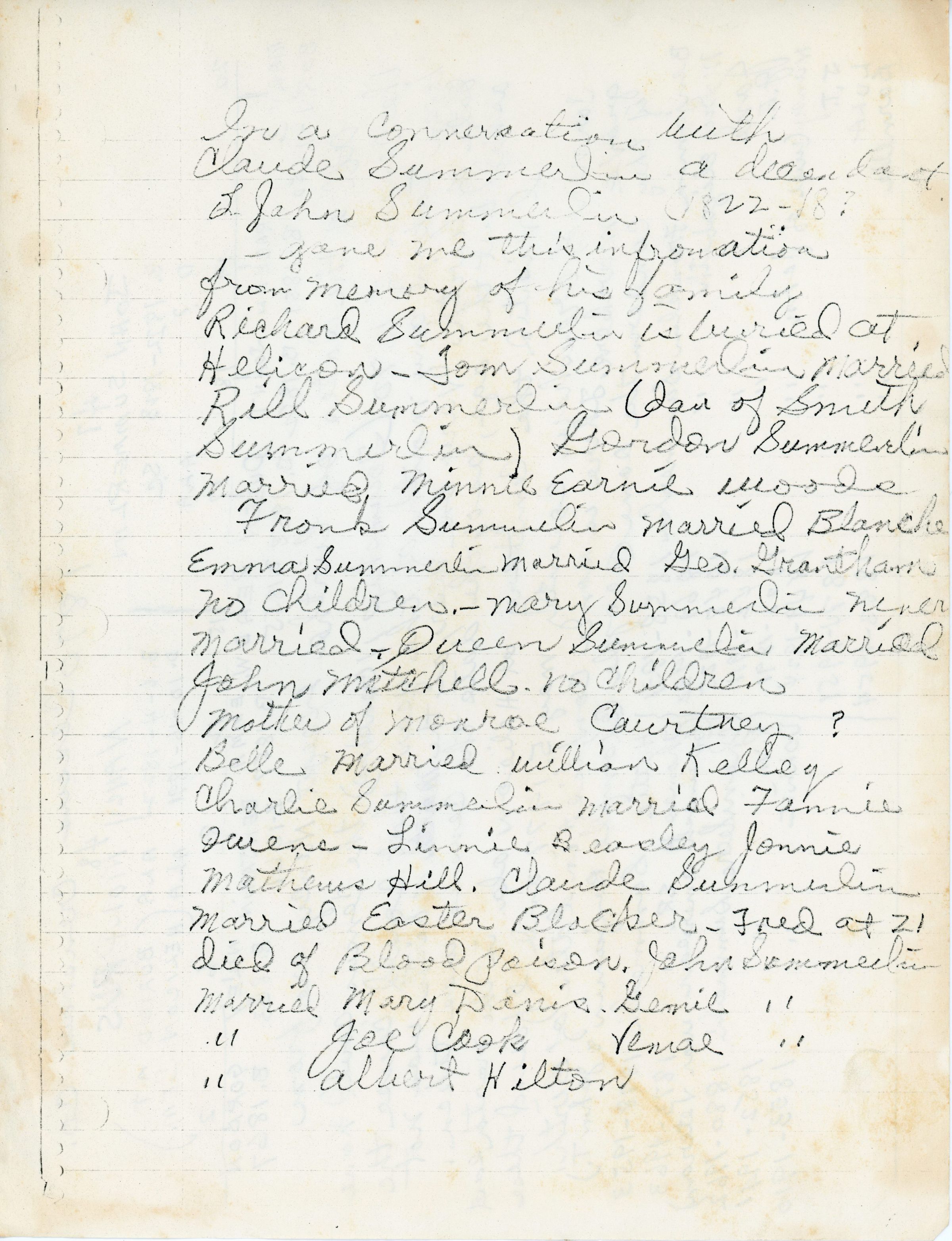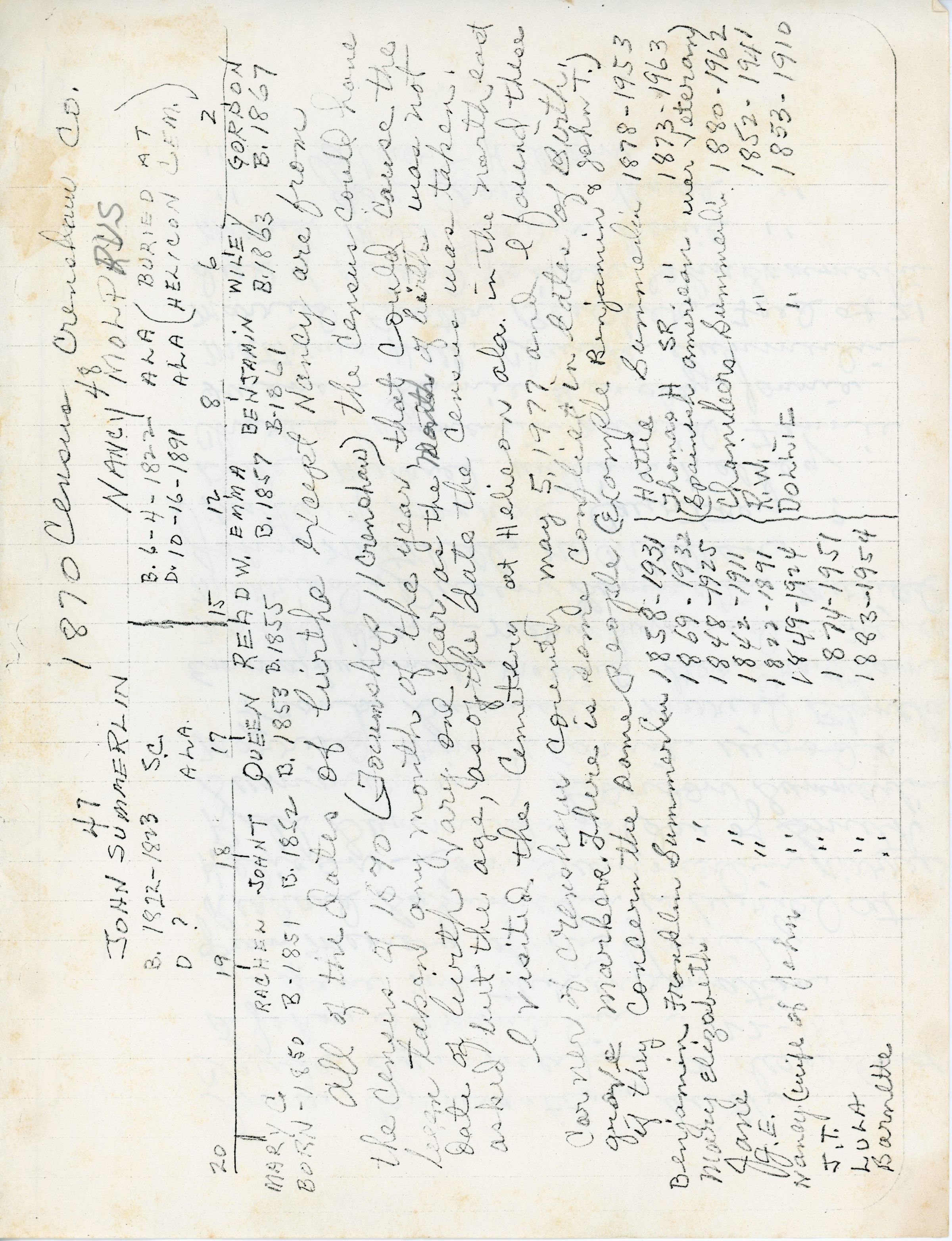 John Summerlin, Nancy Molprus Summerlin, Mary C. Summerlin, Rachel Summerlin, John Thomas Summerlin, Queen Summerlin, Read Summerlin, Emma Summerlin, Benjamin Franklin Summerlin, Wiley Summerlin, Gordon Summerlin, Mary Elizabeth Summerlin, Jane Summerlin, Lula Summerlin, Barnette Summerlin, Hattie Summerlin, Thomas H. Summerlin, Dollie Summerlin