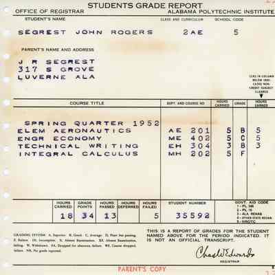 Students Grade Report, John Rogers Segrest Jr.