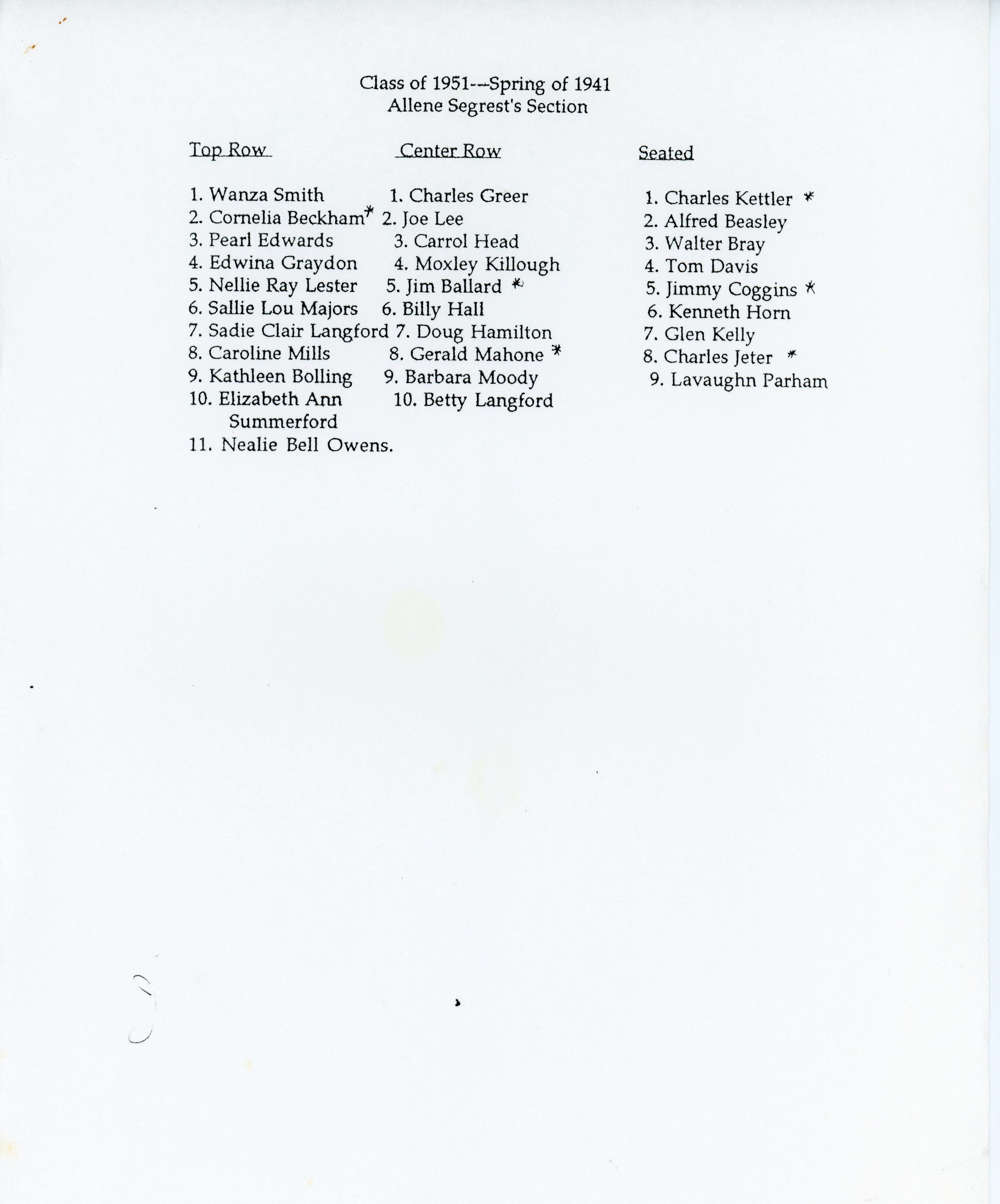 Class of 1951--Spring of 1941