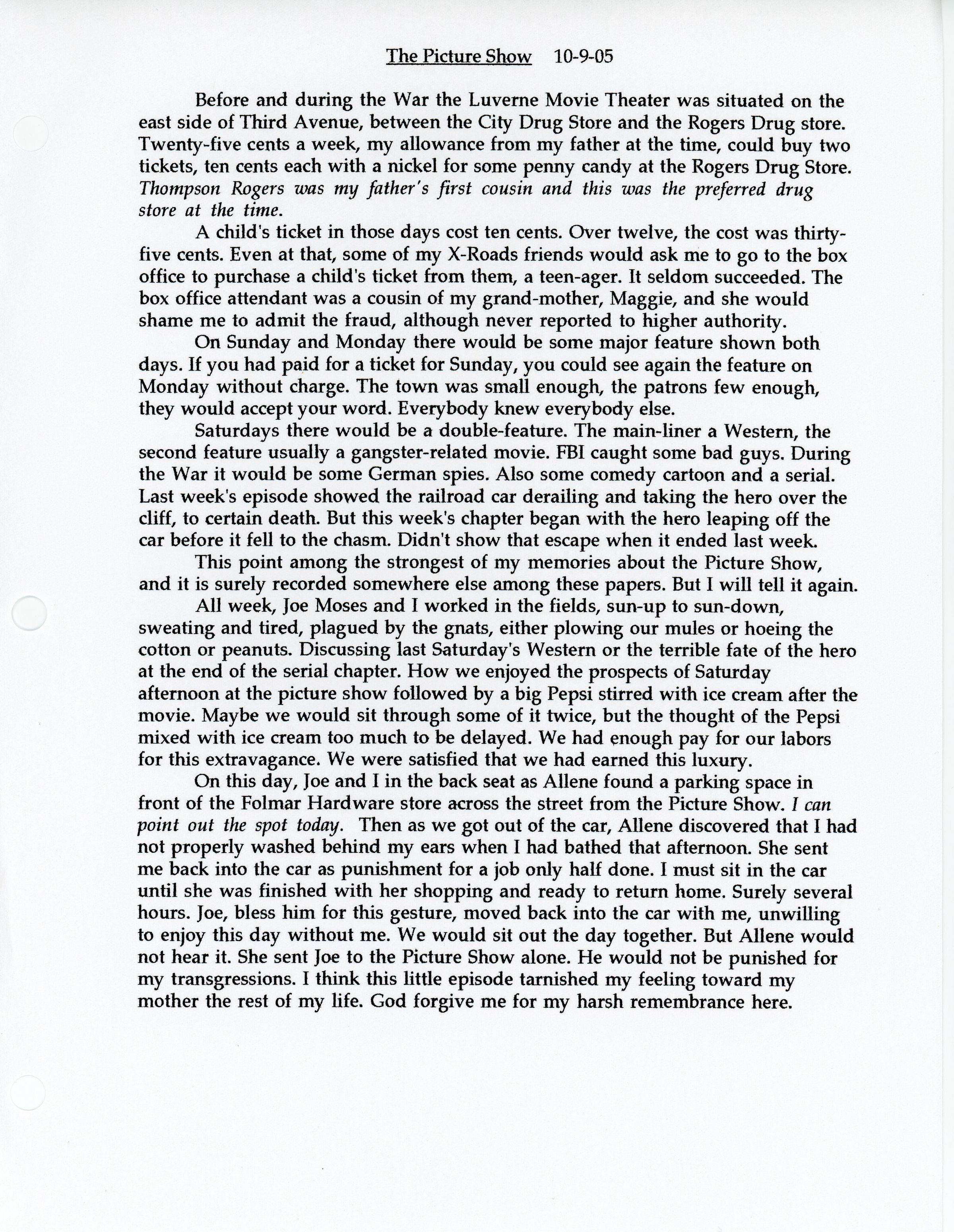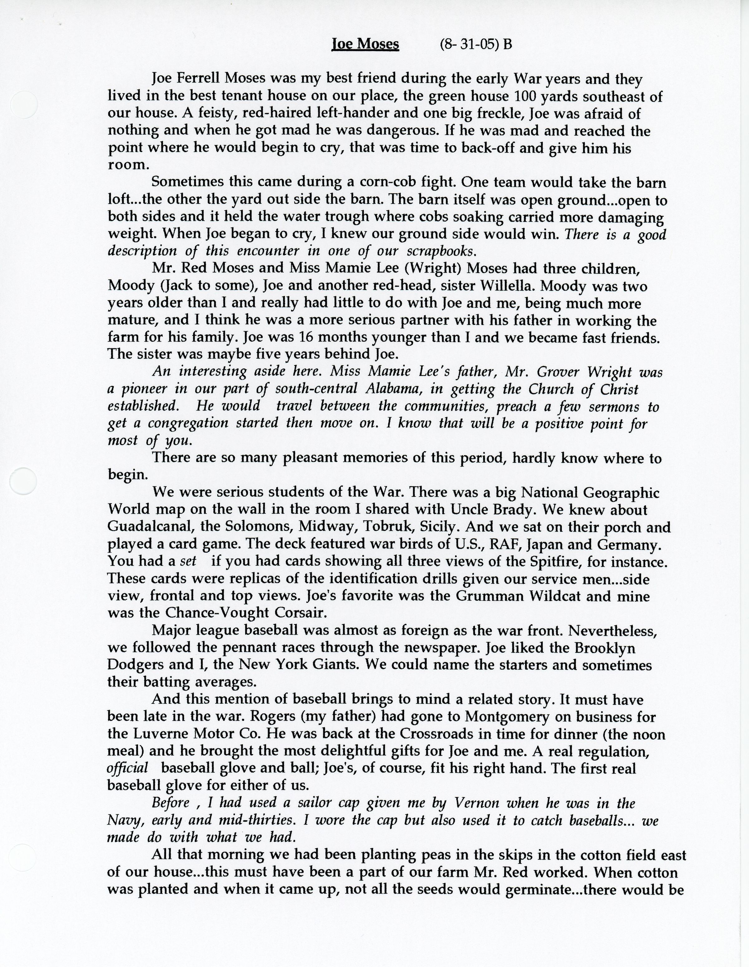 Thompson Rogers, Joe Moses, John Rogers Segrest Jr., Allene Summerlin, Red Moses, Mamie Lee Moses, Brady Summerlin, John Rogers Segrest Sr., Margaret Segrest Argabright, Webb Summerlin, Conrad Phillip Summerlin, Carl Webster Summerlin, Moody Jack Moses