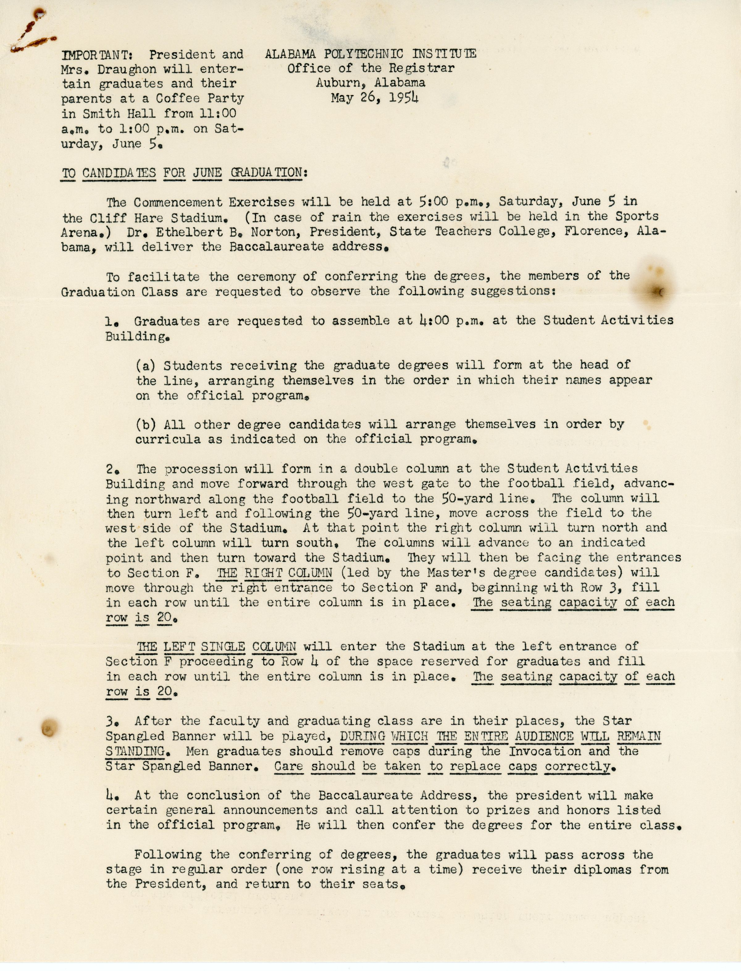 A letter to the 1954 graduates of Auburn (Alabama Polytechnic Institute)Entry/Object ID