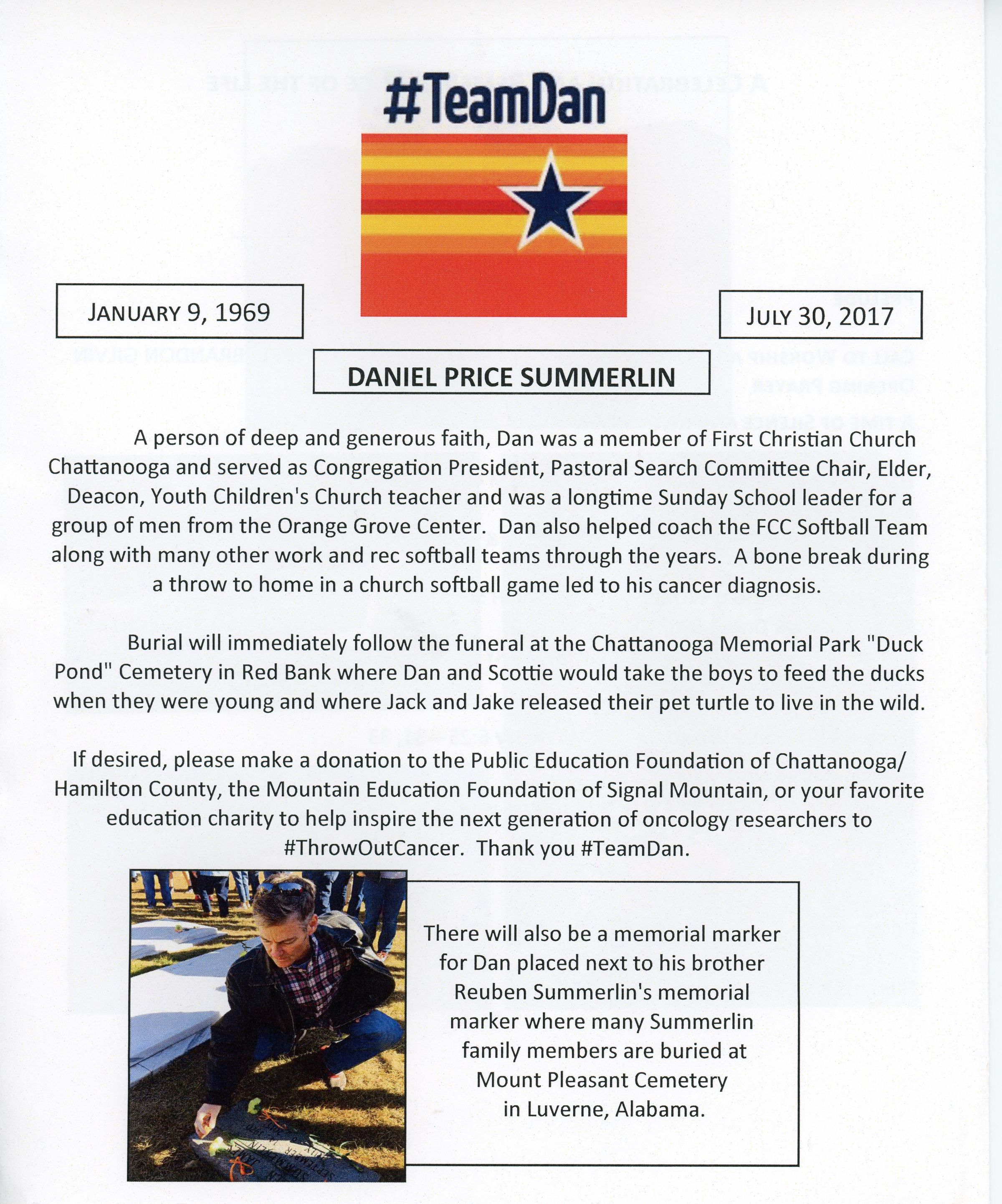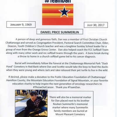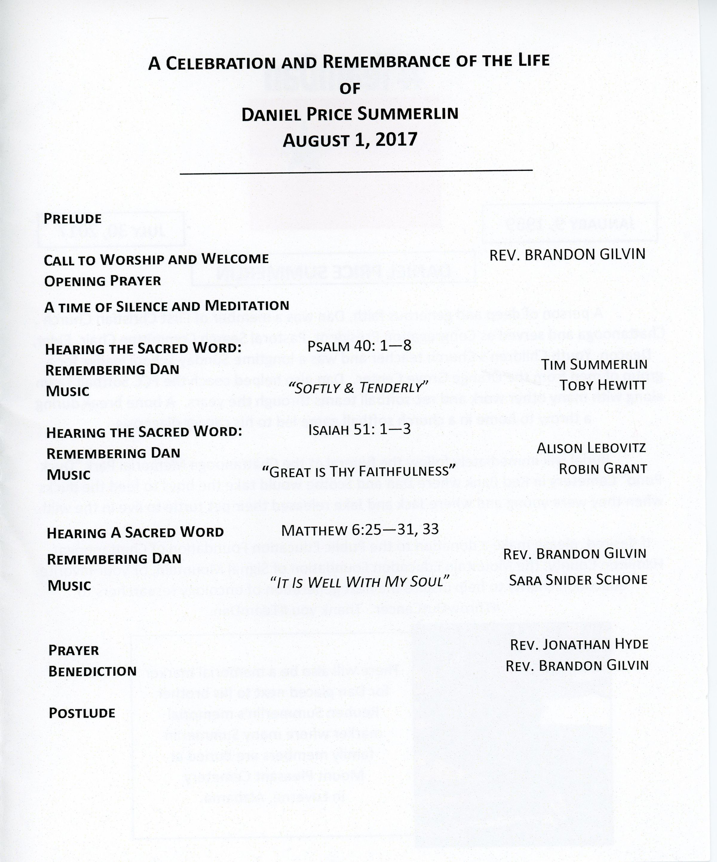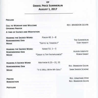 A Celebration and Remembrance of the Life of Daniel Price Summerlin