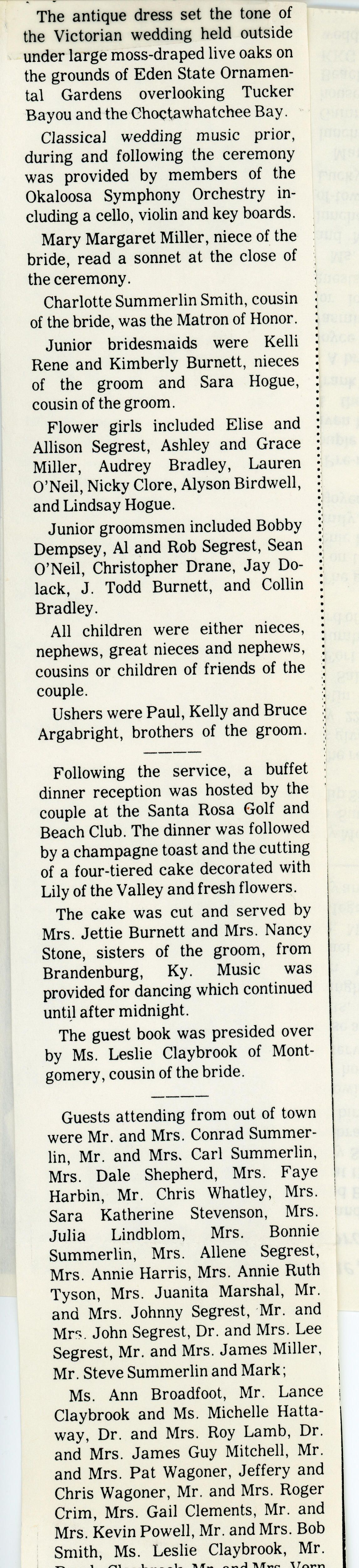 Second portion of Segrest-Argabright wedding takes place July 23 in FloridaEntry/Object ID