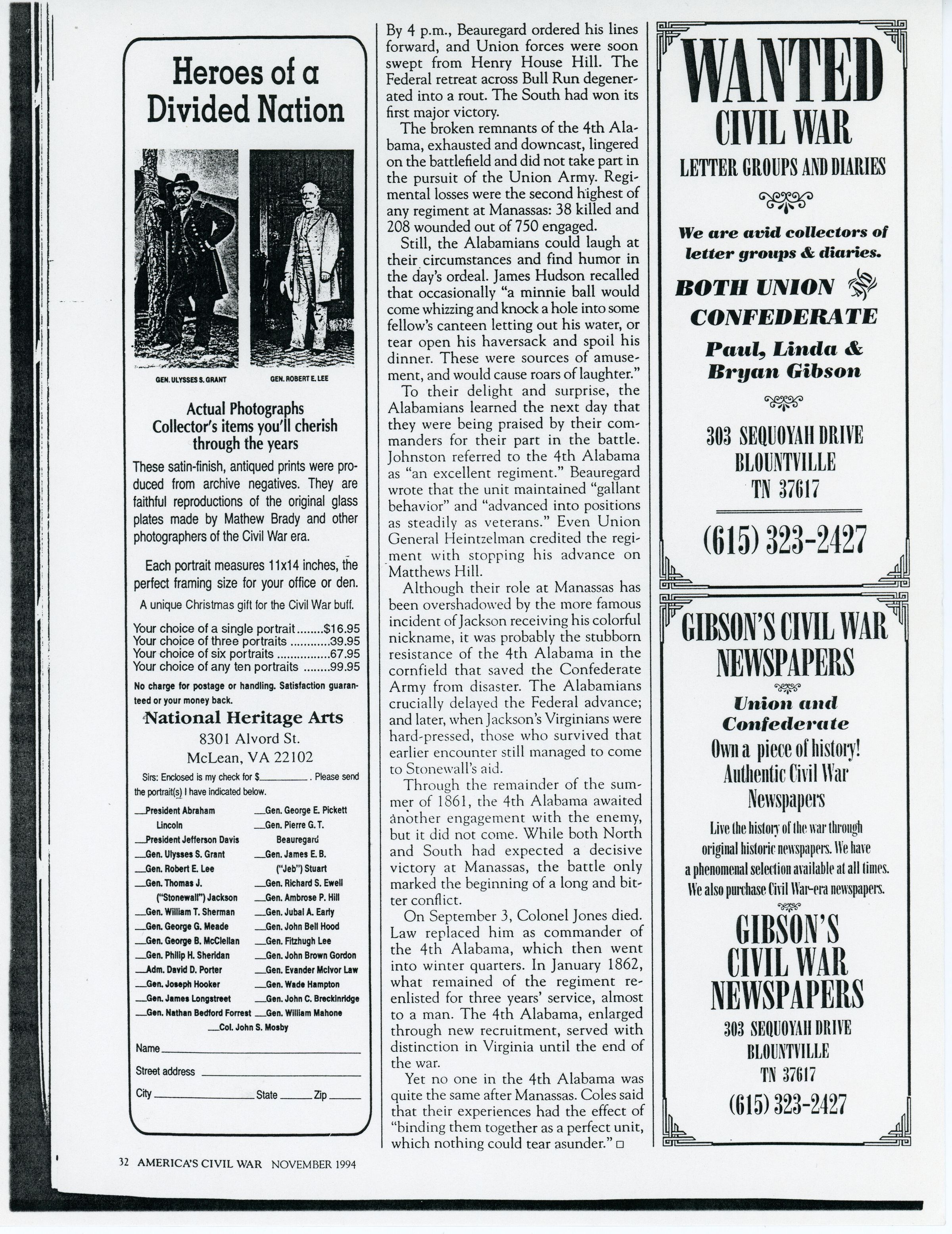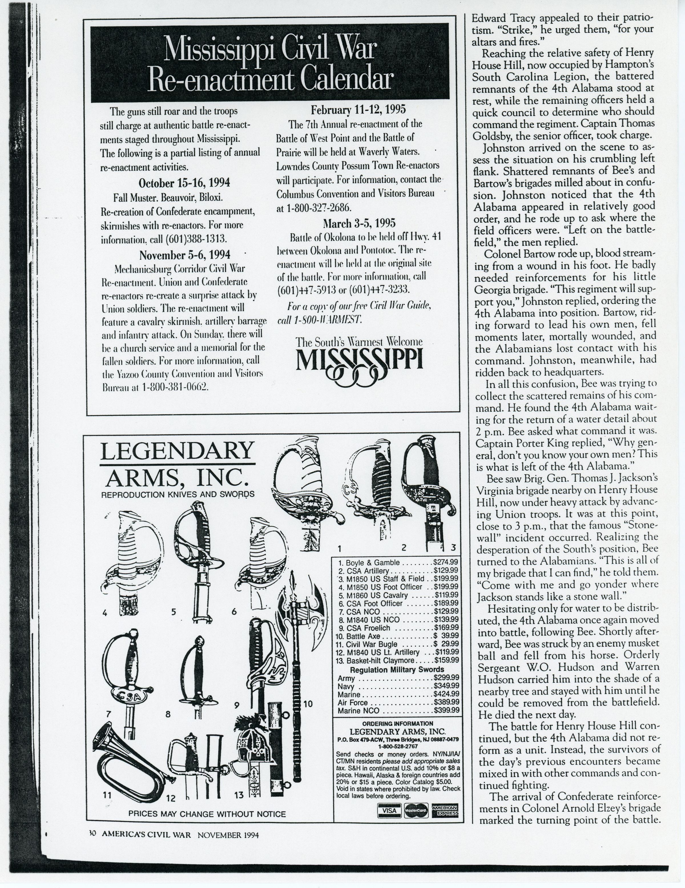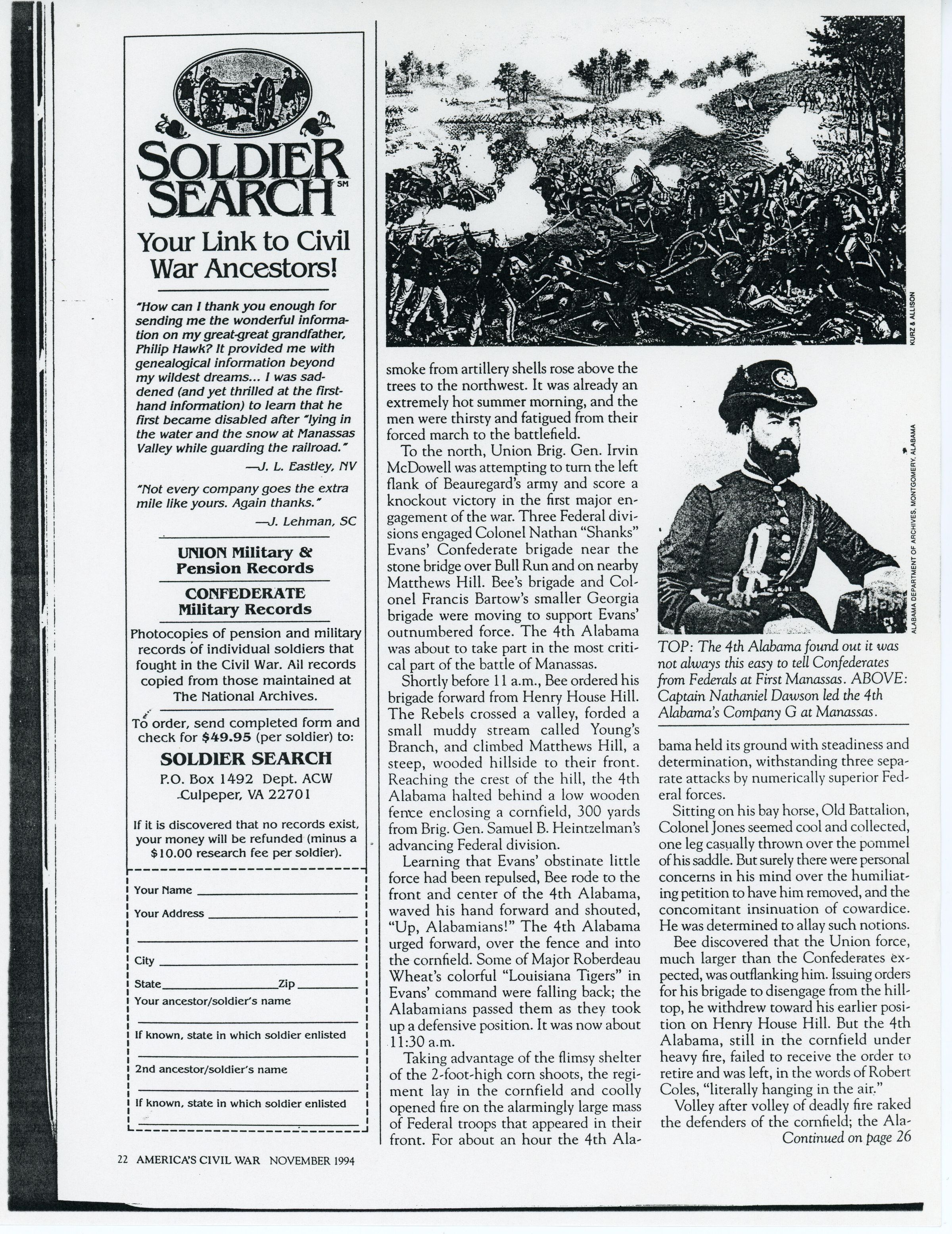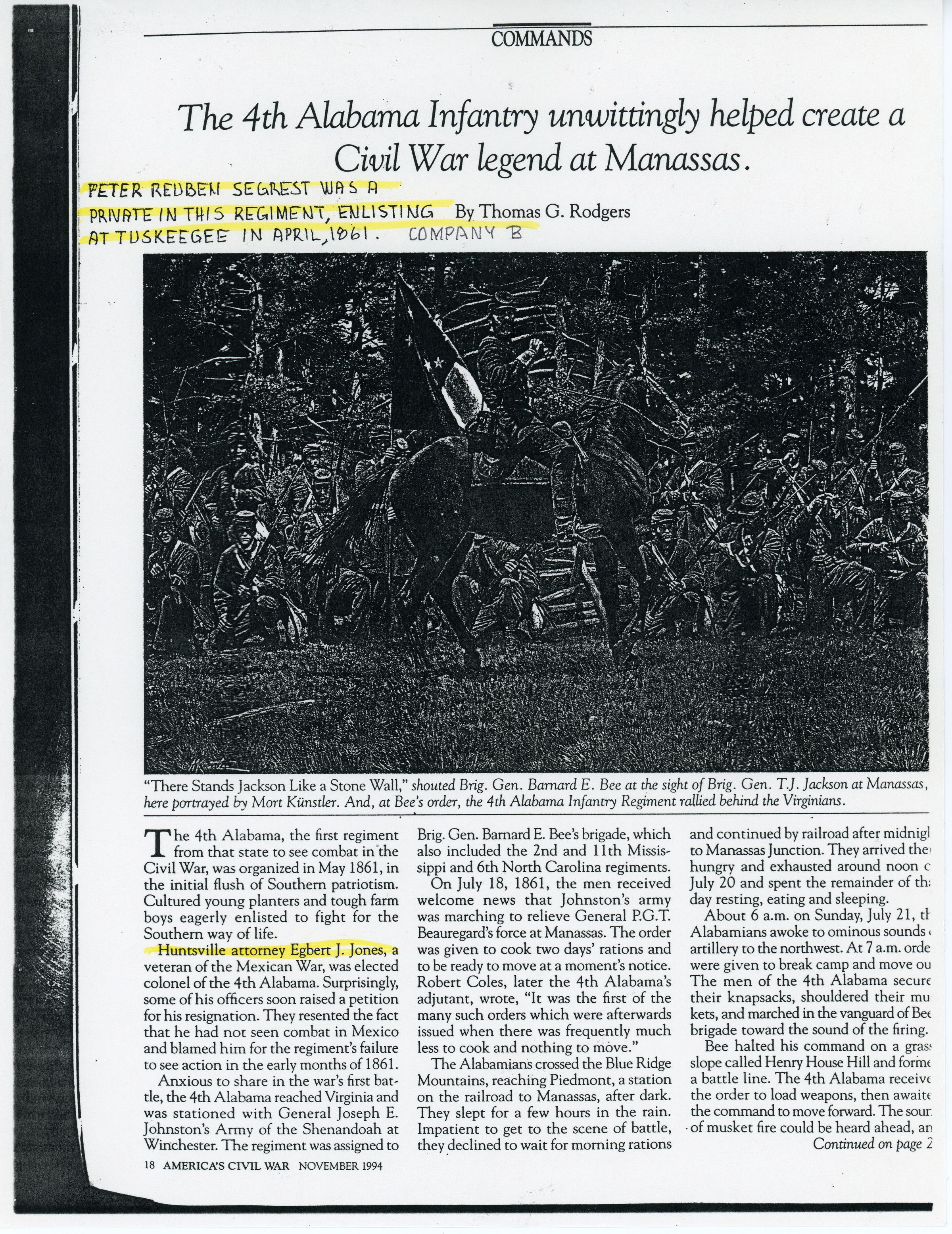 The 4th Alabama Infantry unwittingly helped create a Civil War legend at ManassasEntry/Object ID