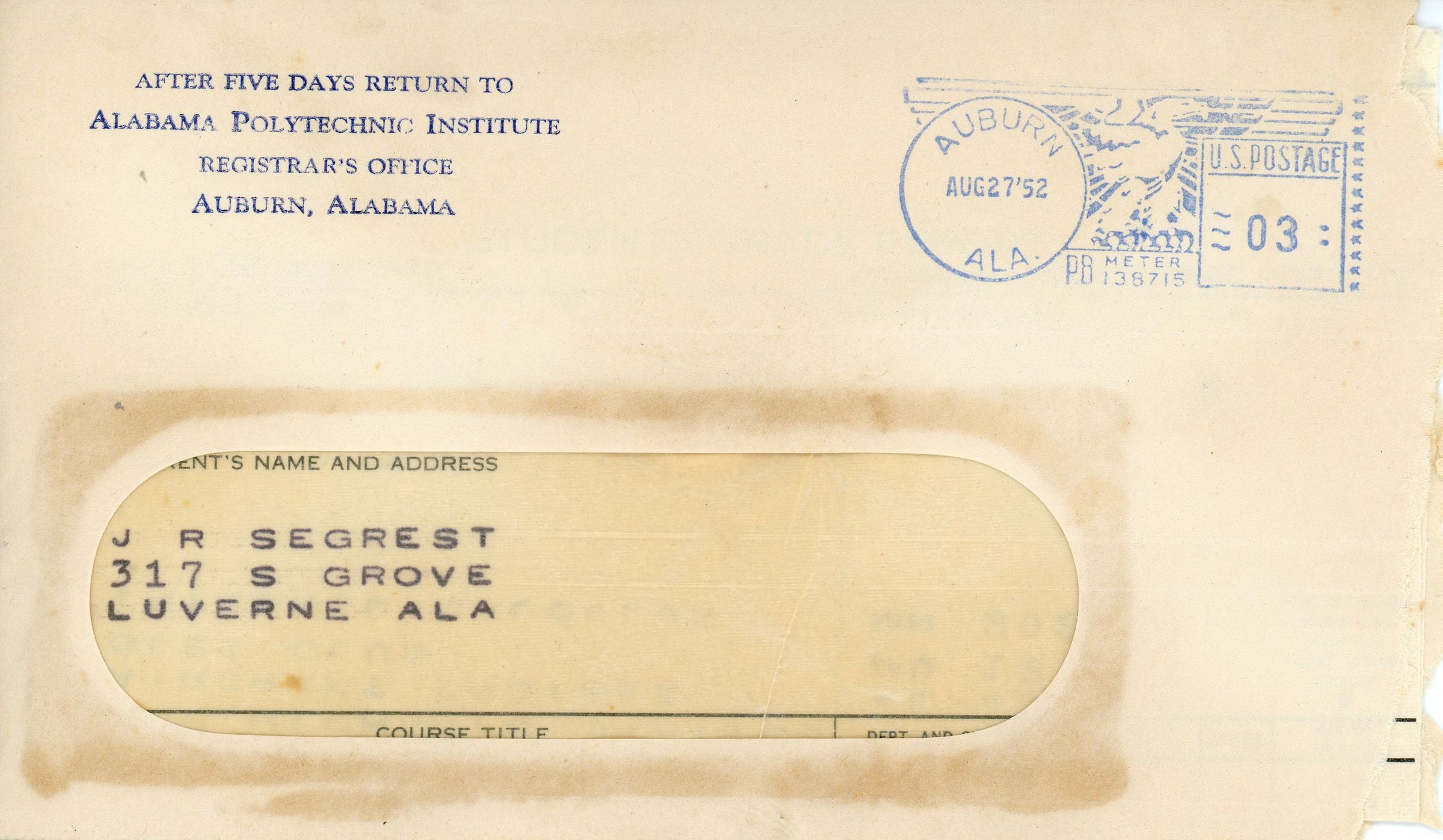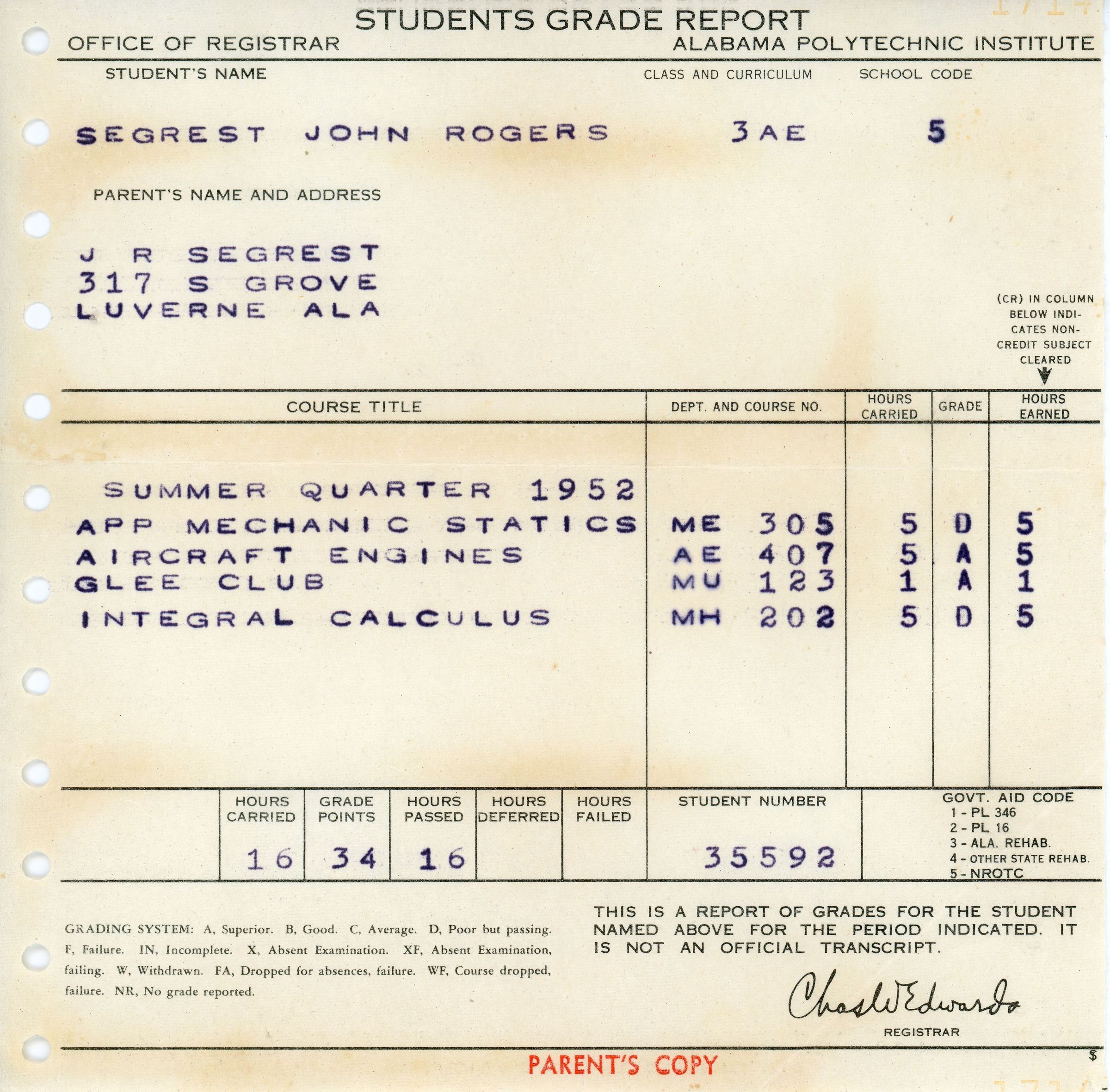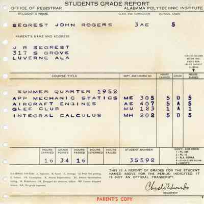 Students Grade Report, John Rogers Segrest Jr.
