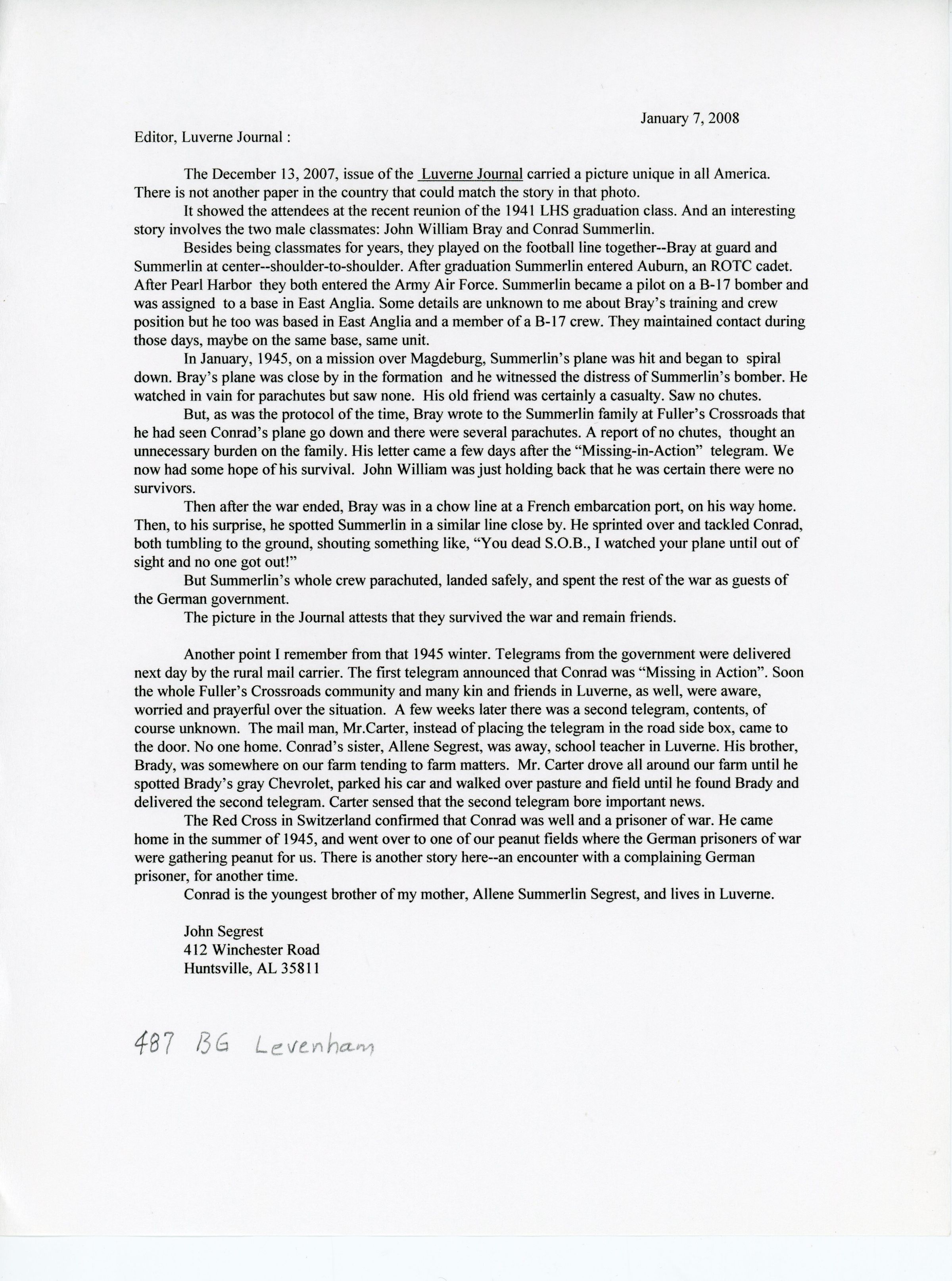 Luverne High School, letter to the editor, World War IIRelationships