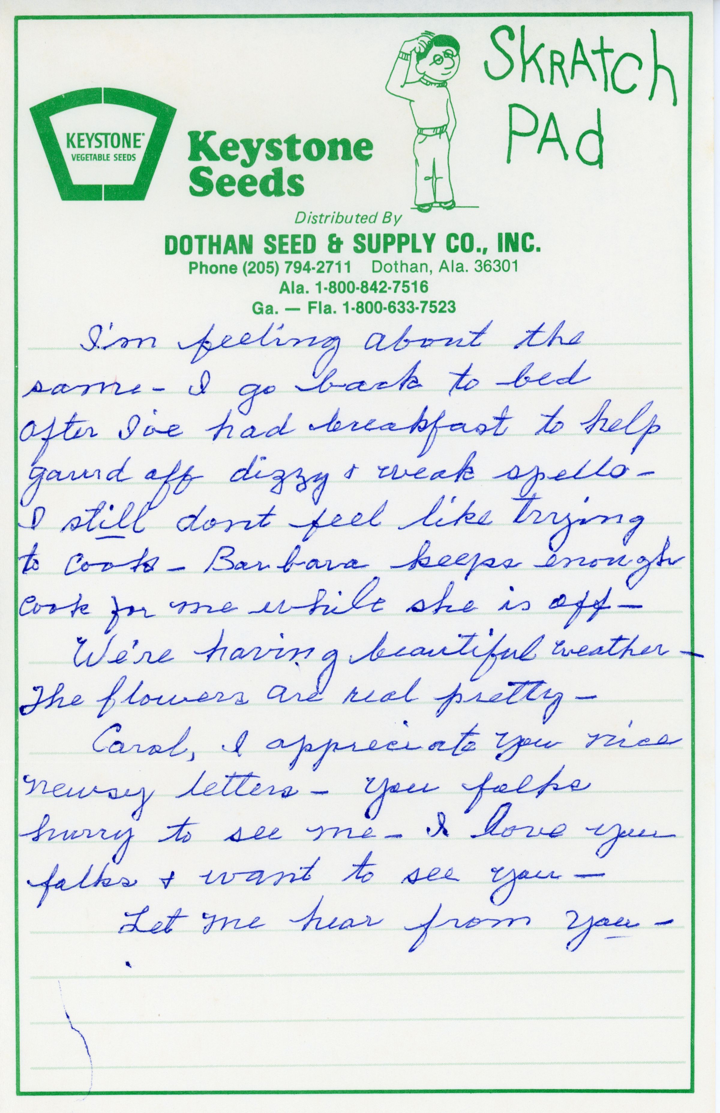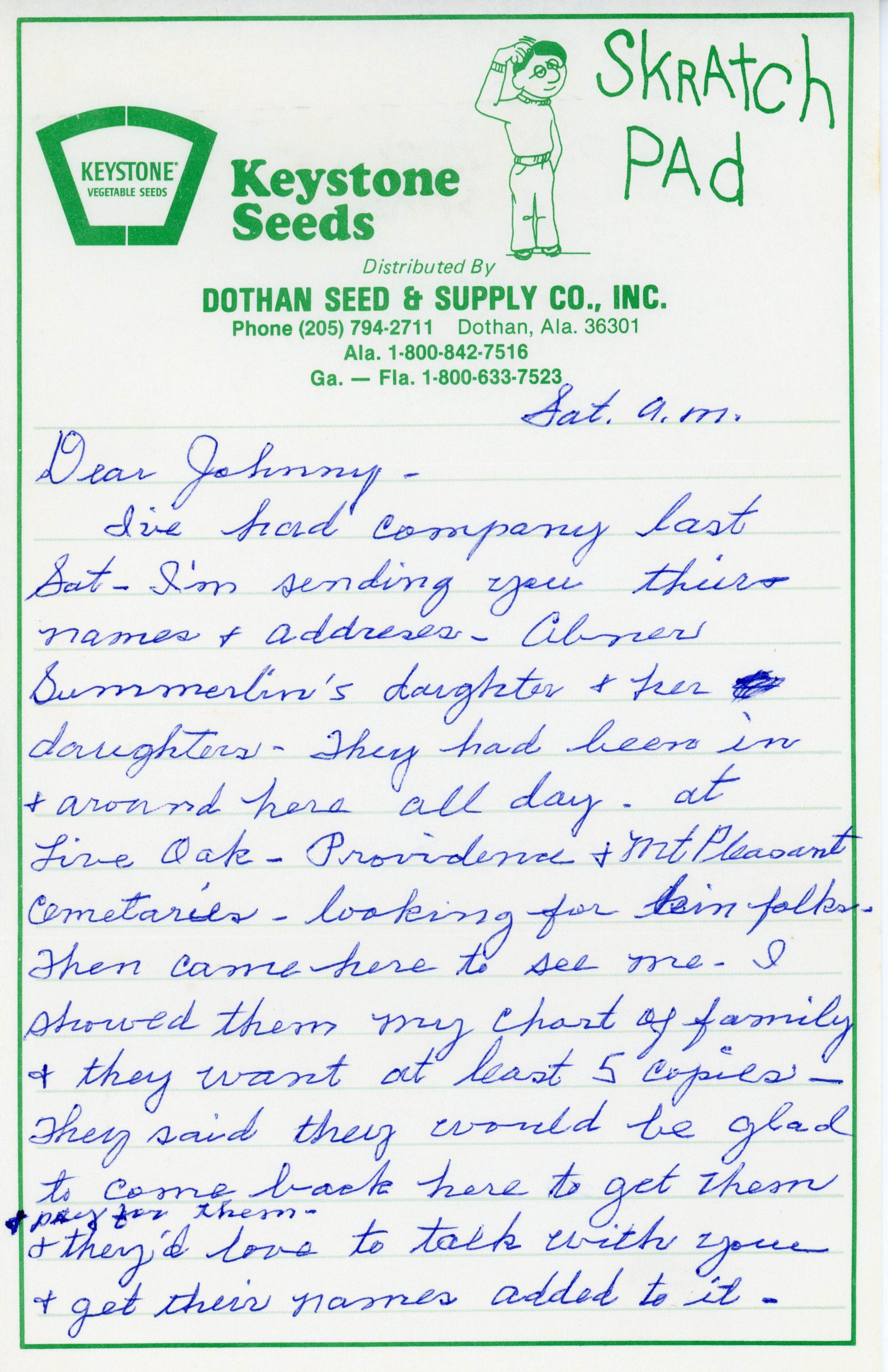 Letter to Johnny from sick relative