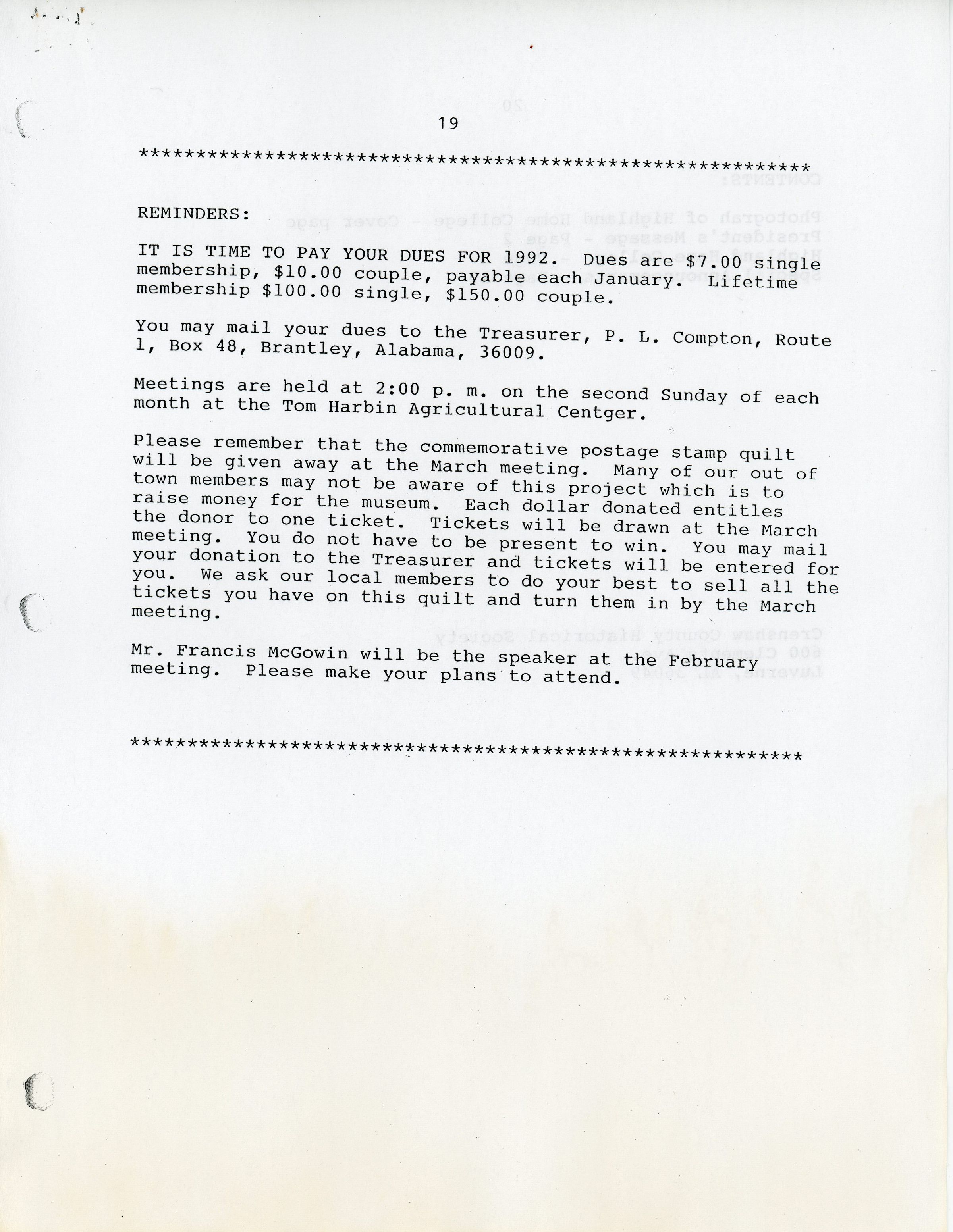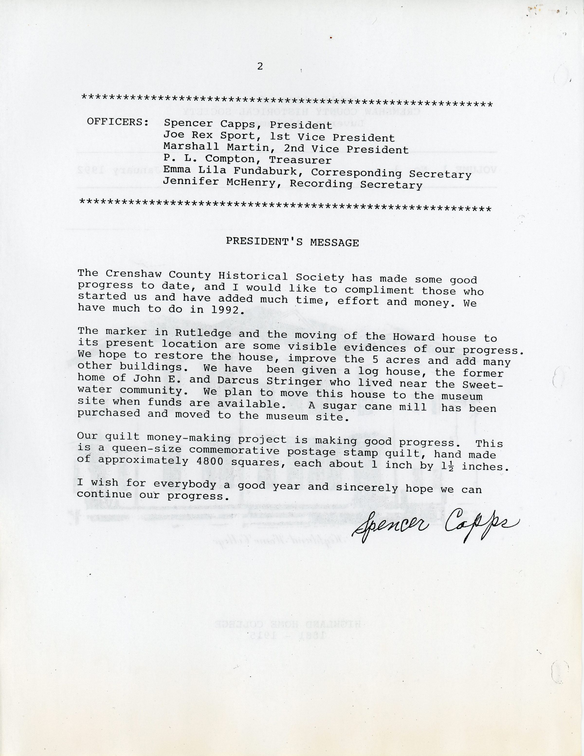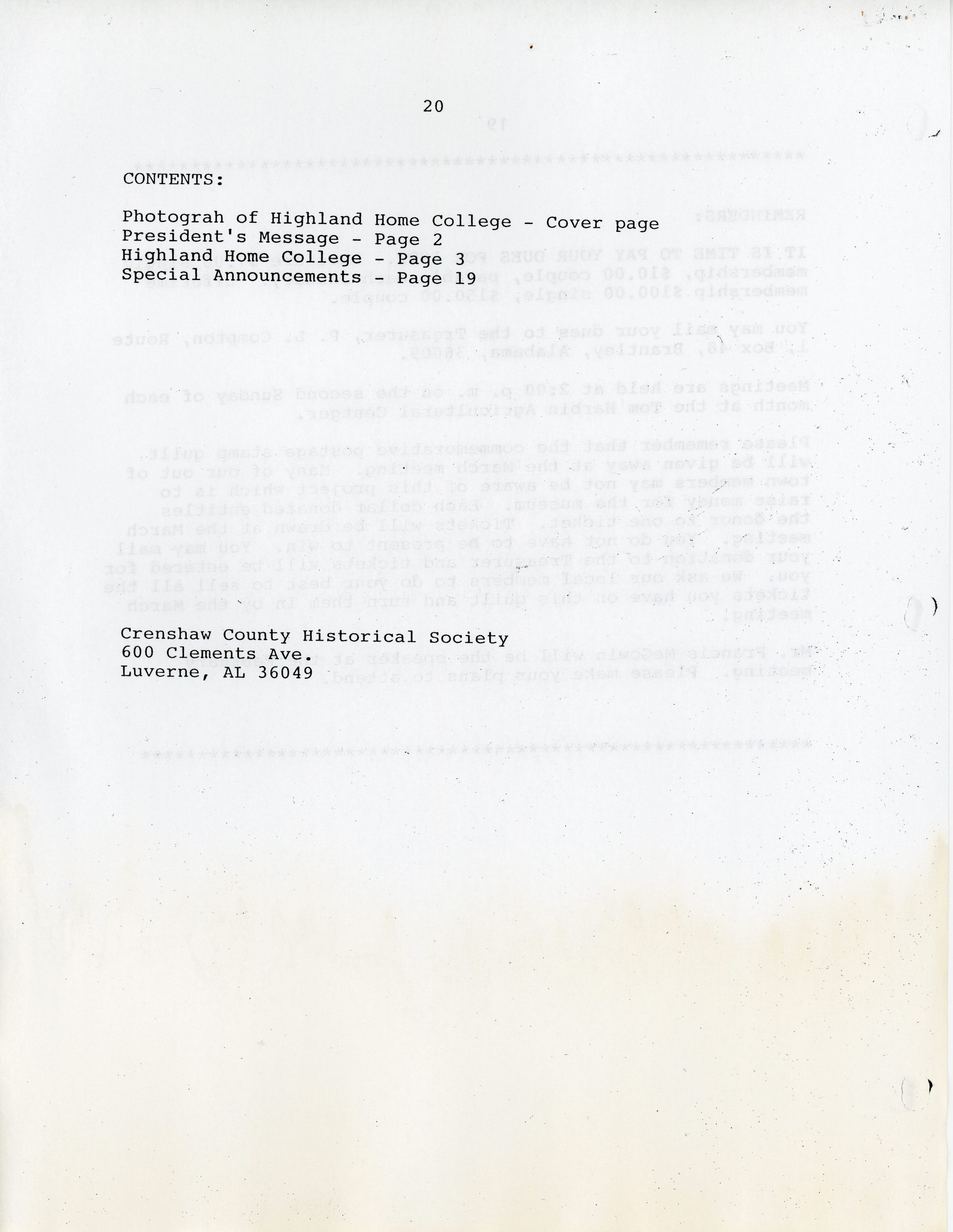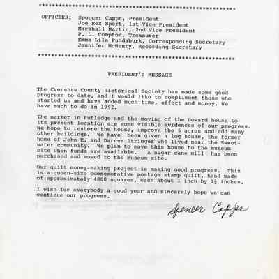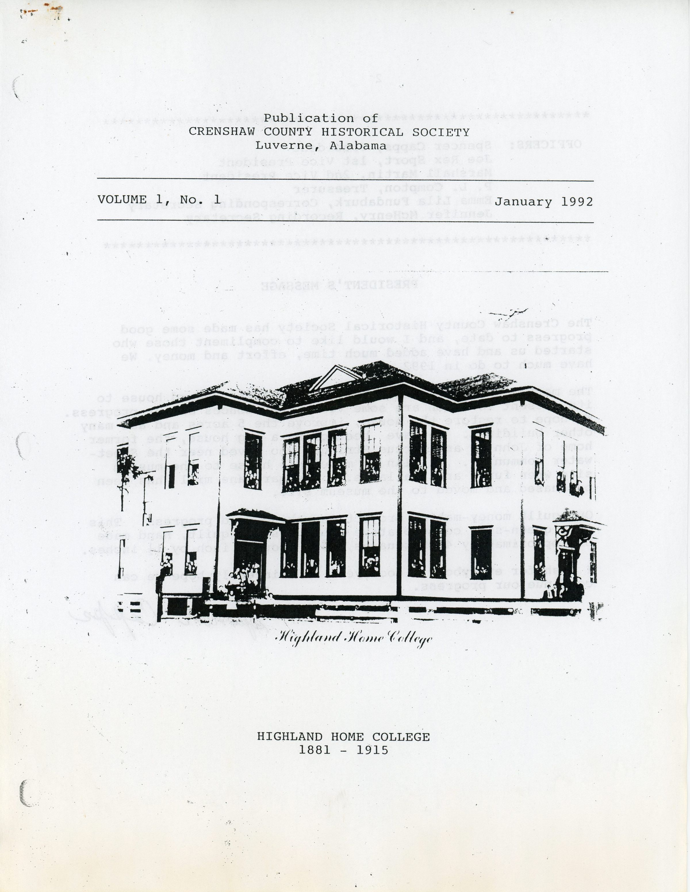 Crenshaw County Historical Society, Vol. 1, No. 1