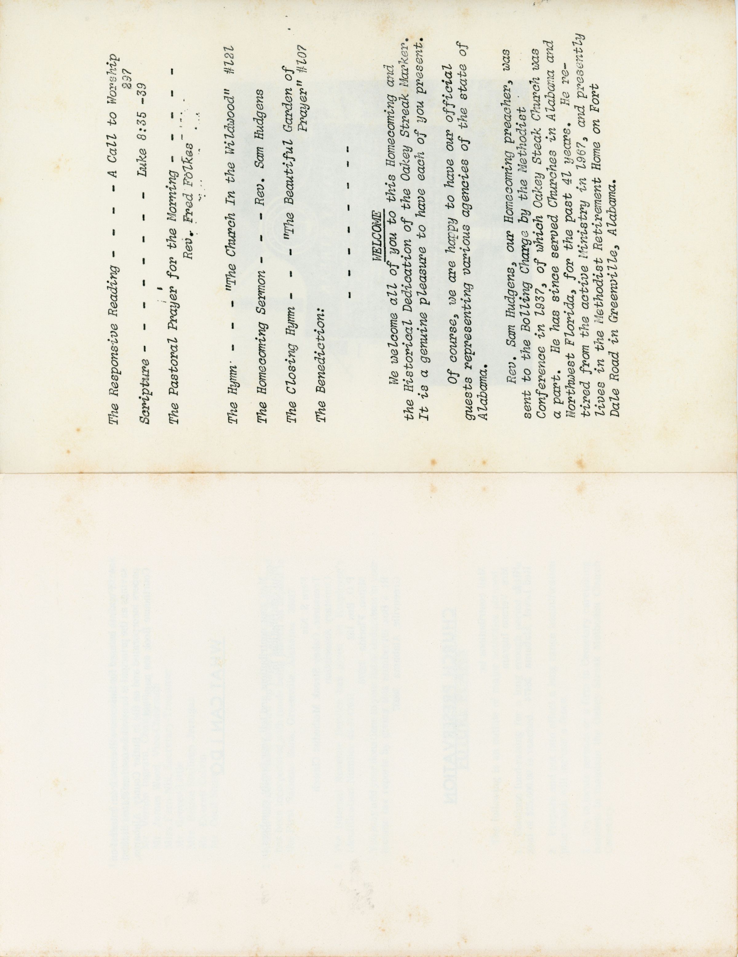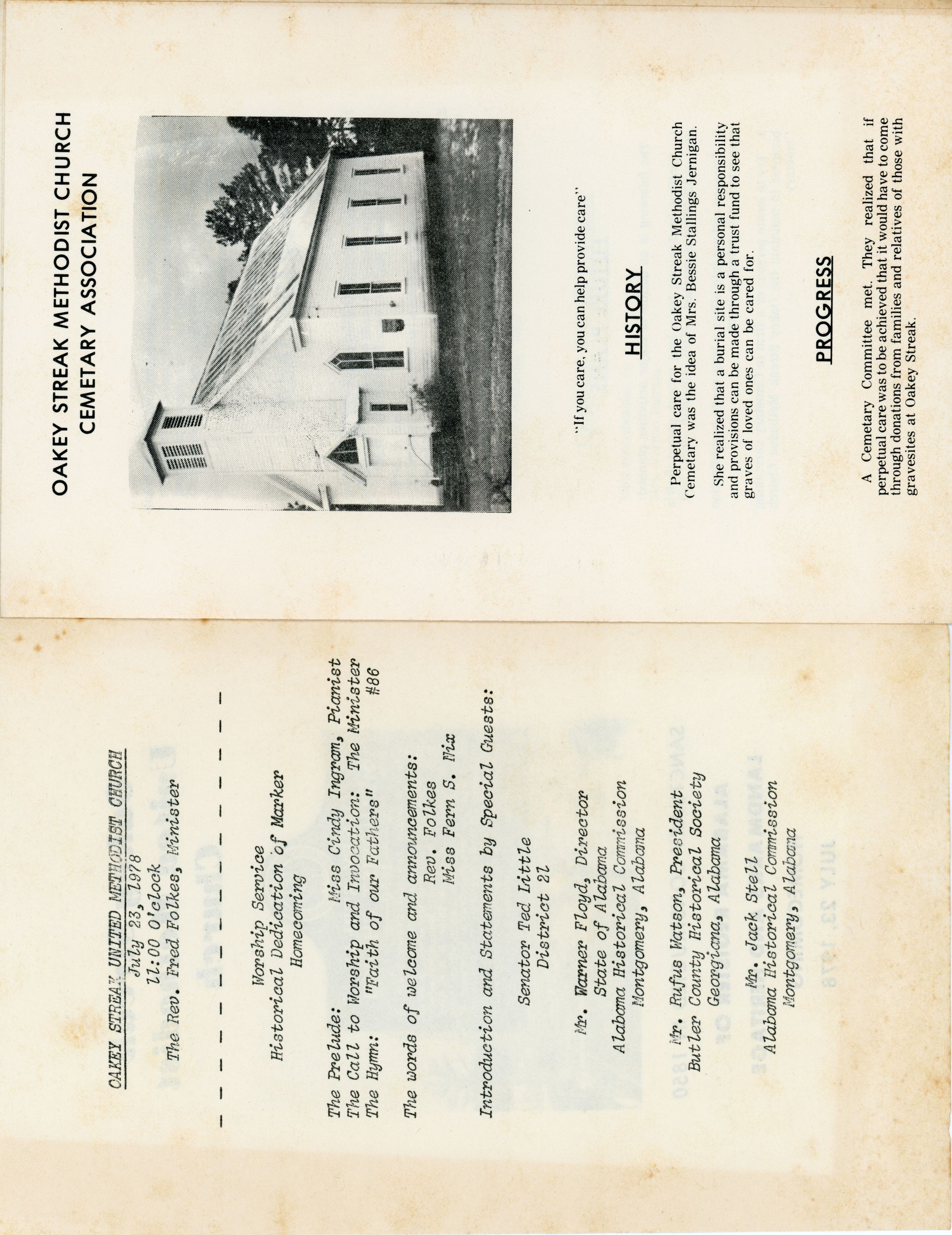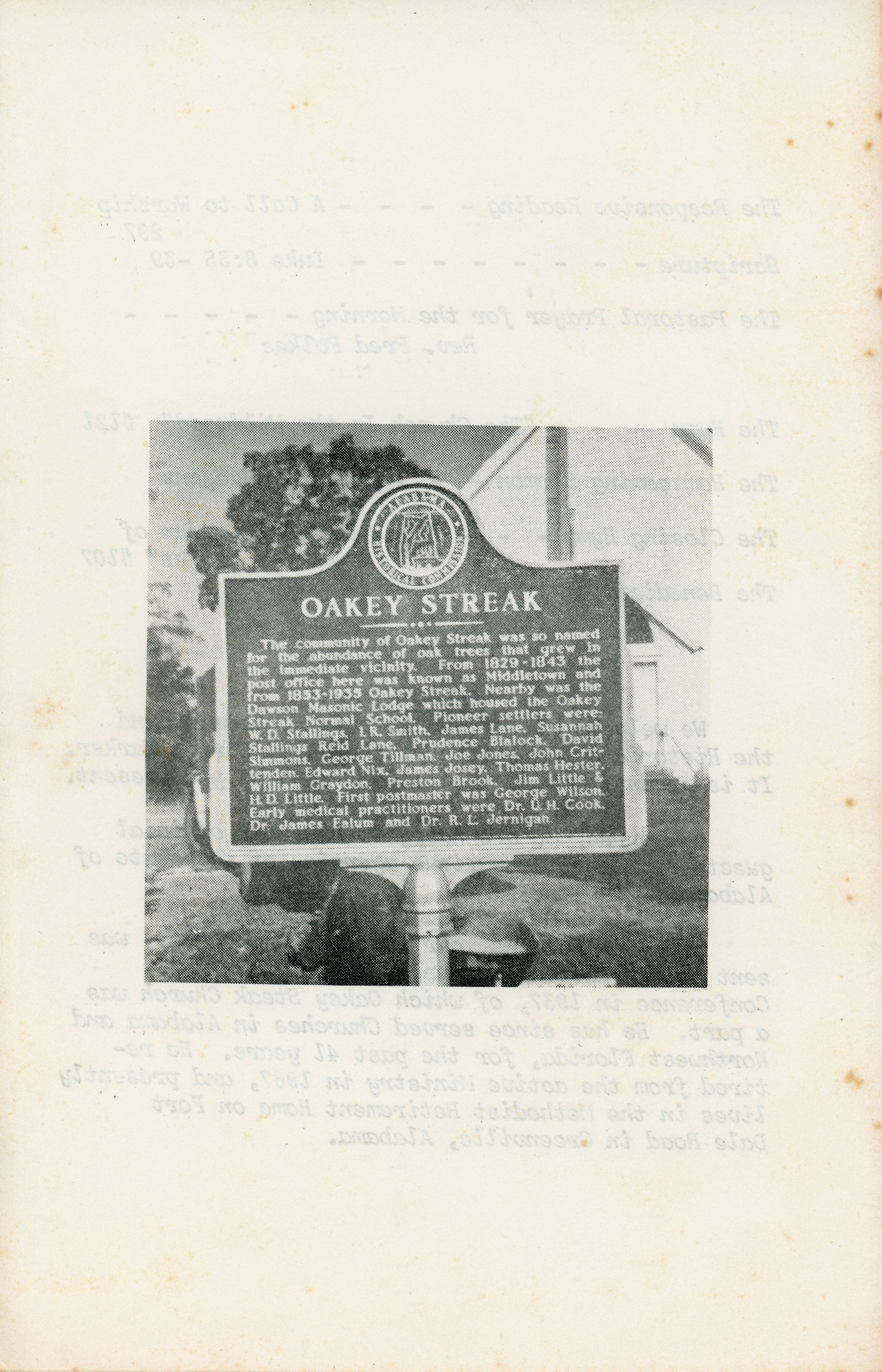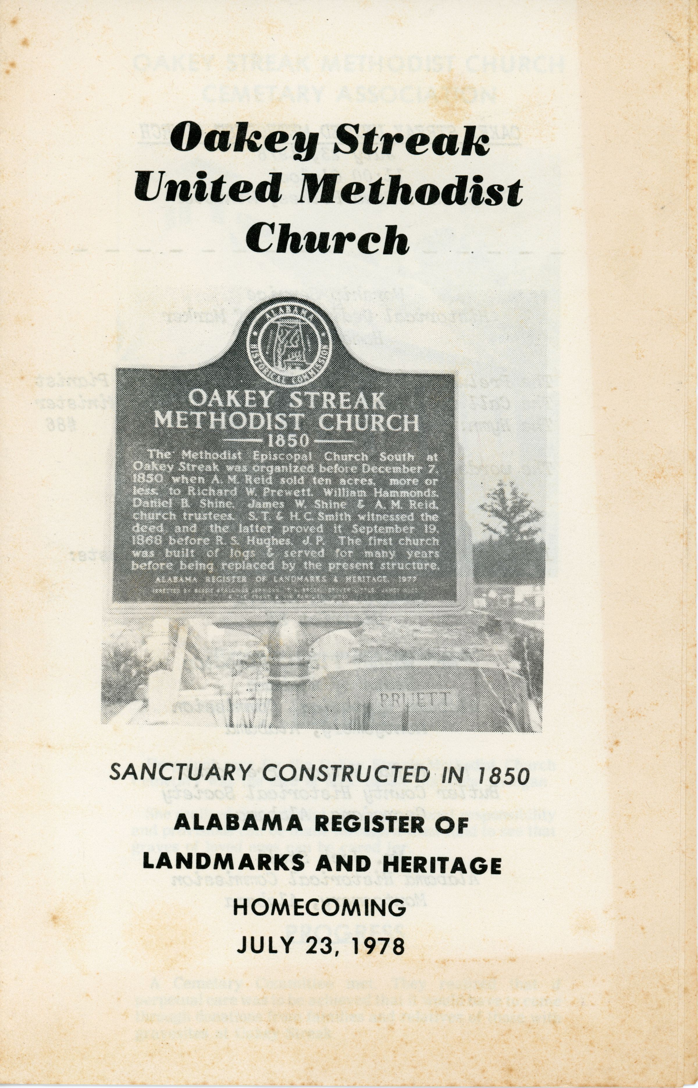 Oakey Streak Methodist Church Homecoming Program