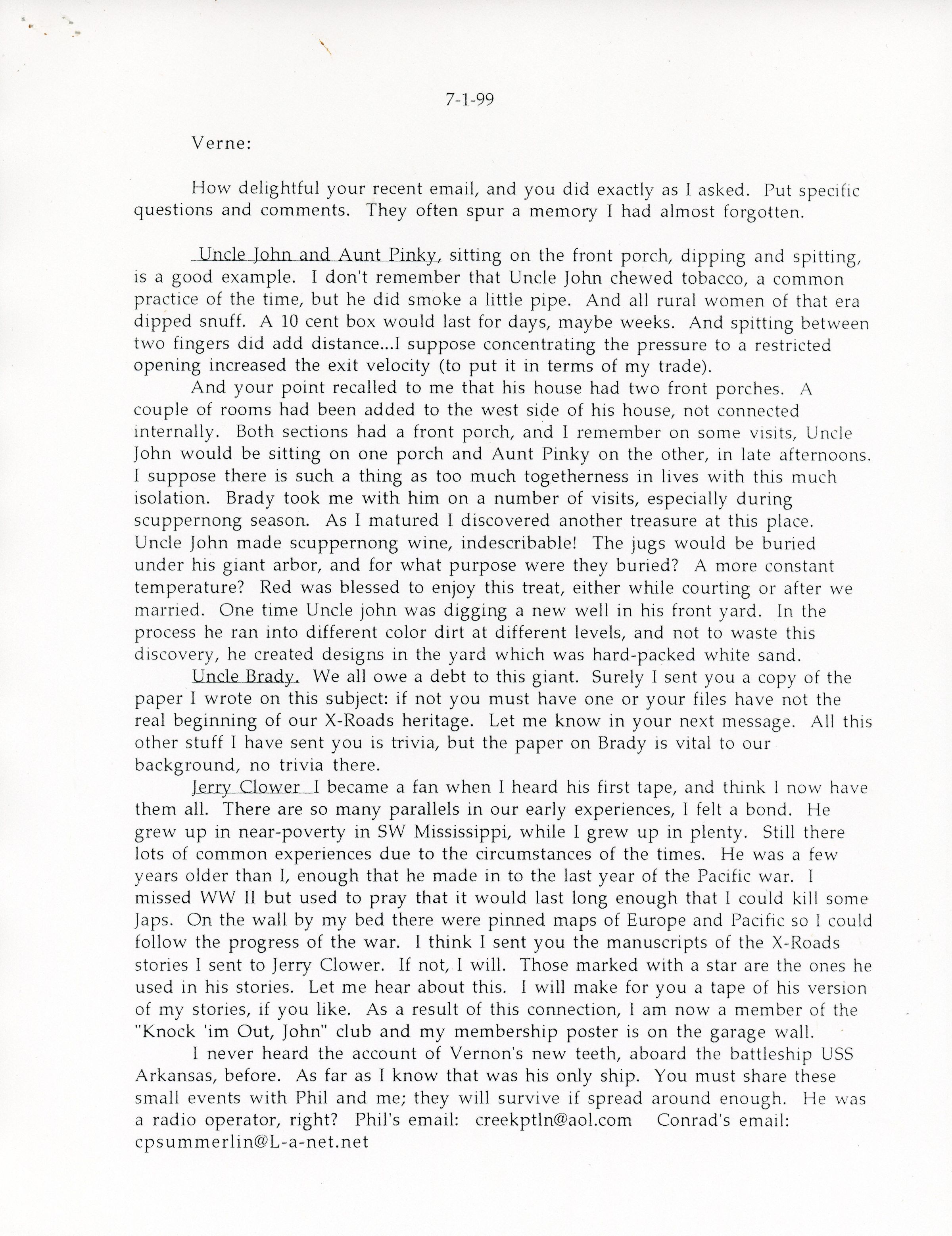 Email response to Verne