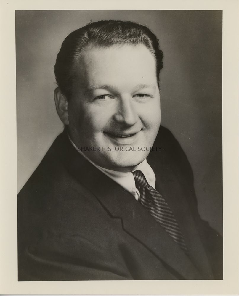 Undated black-and-white headshot of an unidentified man, possibly radio personality Big Wilson, in a dark suit and striped tie.Photograph Details