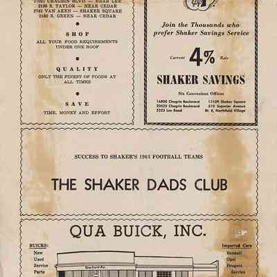 50th anniversary homecoming program for the Shaker Heights High School vs. Euclid High School football game taking place on the Shaker field on October 14, 1961. Includes brief articles on the city's history and highlights Lois Vance's winning design for the city seal contest.Acquisition