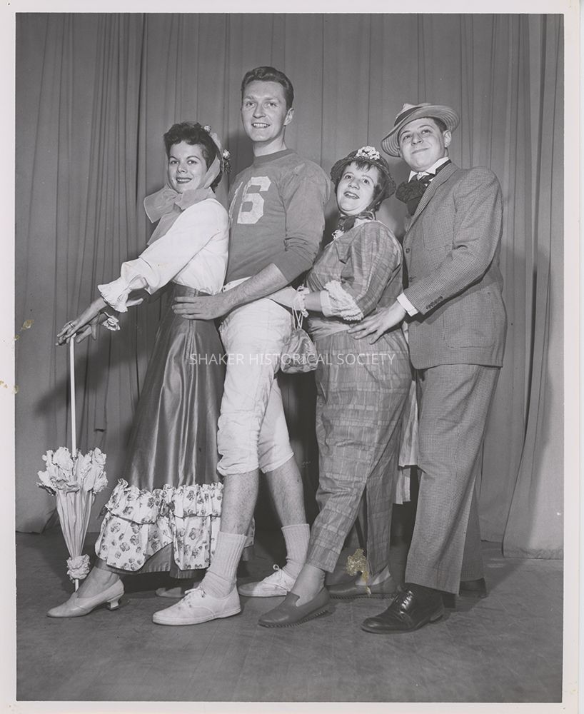 Black-and-white theatrical publicity photograph by Jim Brown & Associates showing unidentified Shaker Players cast members from an unidentified play, possibly William Inge's "Picnic."Photograph Details