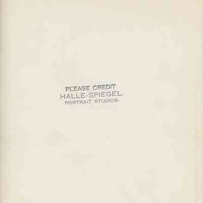 Undated black-and-white headshot by Halle-Spiegel Portrait Studios of an unidentified woman with short hair wearing a gingham collared shirt and large pearl earrings.Photograph Details