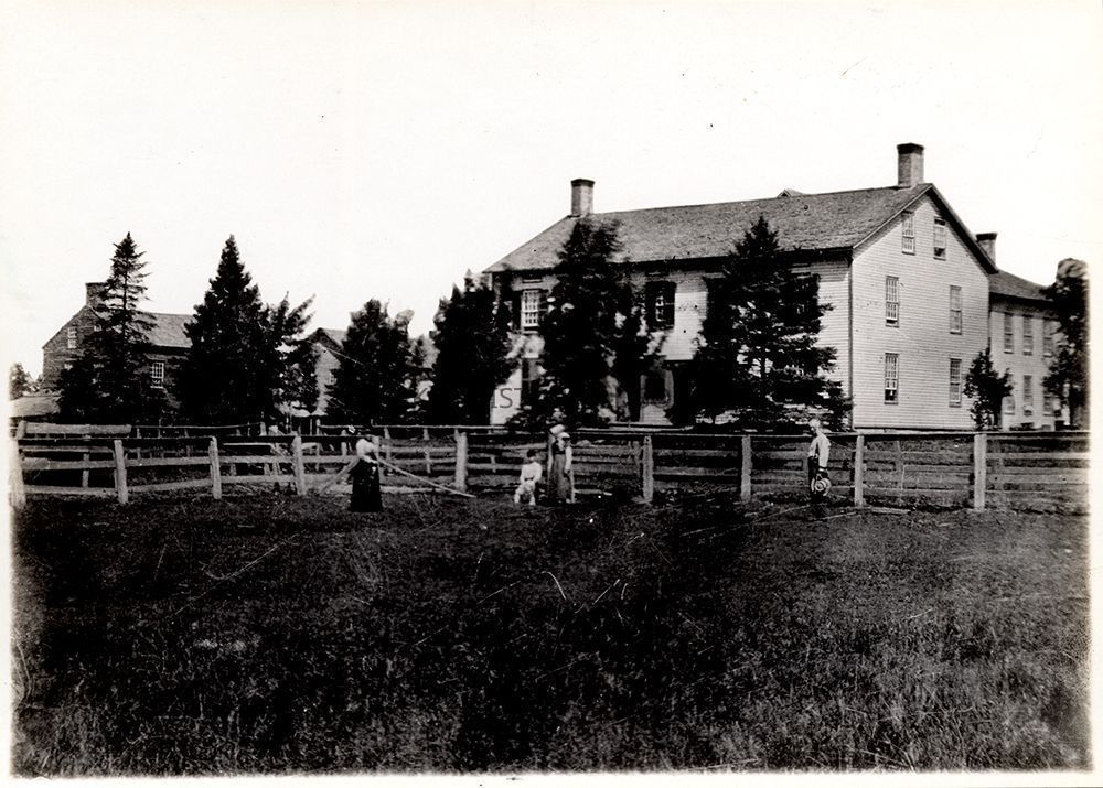 Plate 43 from from Shakers & Kirtland by Louis Baus showing a southeast view of the East Family house near present-day Fontenay Road.