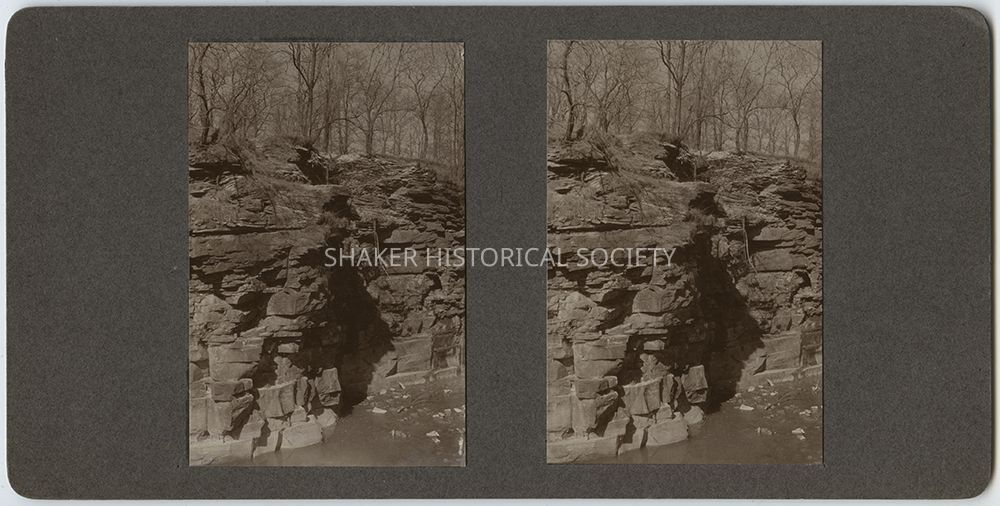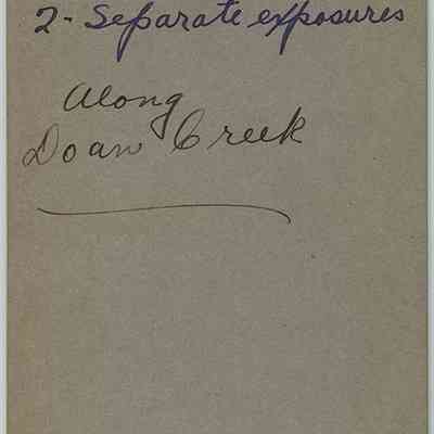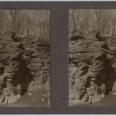 Toned black-and-white stereograph photographs by Ladis Lisy of Doan Brook Gorge. Photographs are mounted on grey board with handwritten notes about the date, location, exposure, and developer on verso.Photograph Details