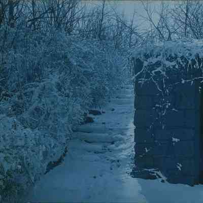 Blue-toned black-and-white stereograph photographs by Ladis Lisy of steps and a stone structure at the Wildflower Preserve at Lower Lake. Photographs are mounted on black board with handwritten notes about the date, location, exposure, and developer on verso.Photograph Details