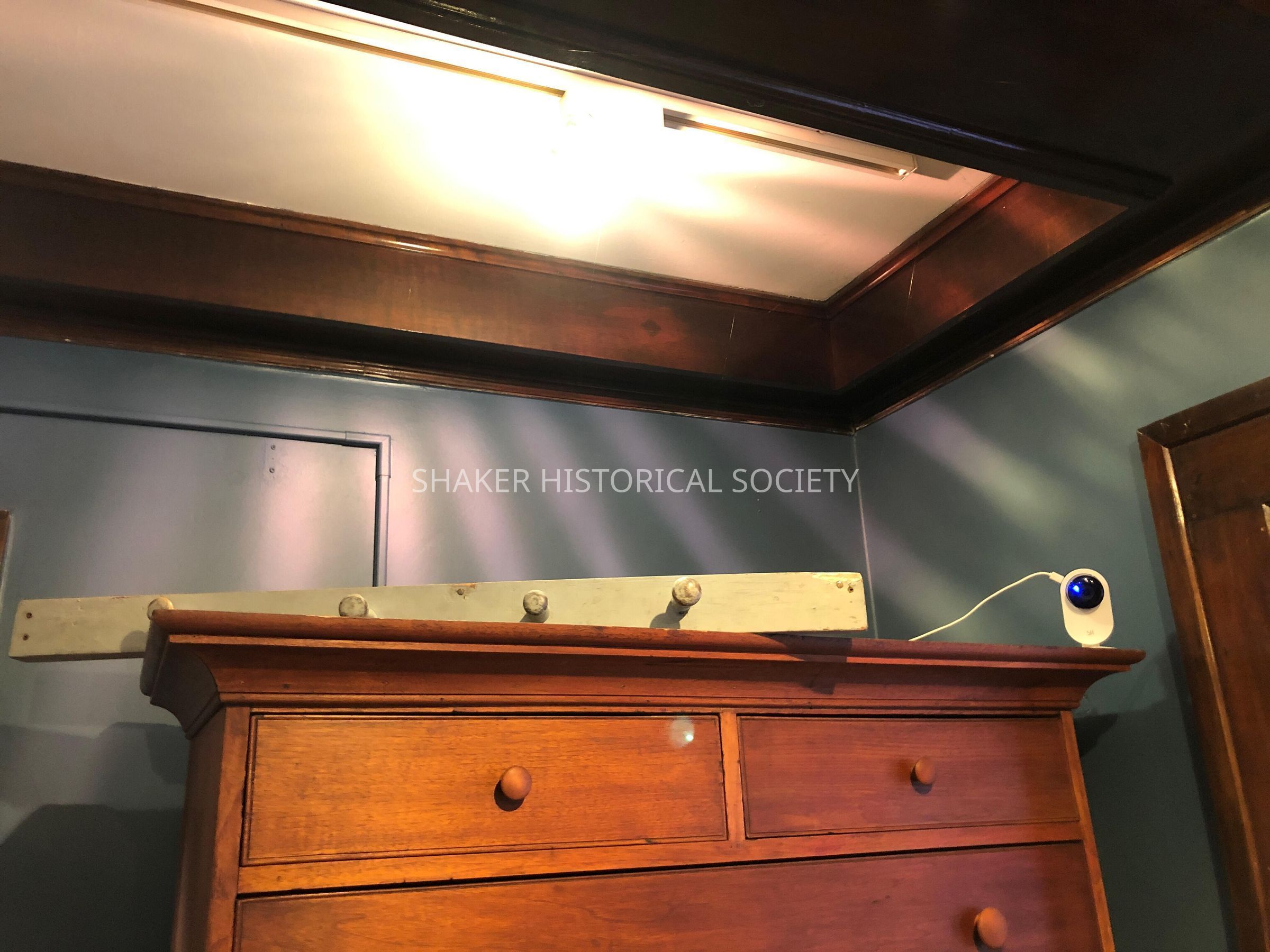 Peg rail with four pegs from North Union Meeting House pained "Shaker Blue."Location