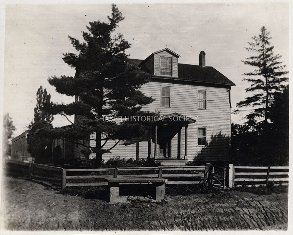 Plate 18 from from Shakers & Kirtland by Louis Baus showing a northwest view of the Center Family office along Lee Road.