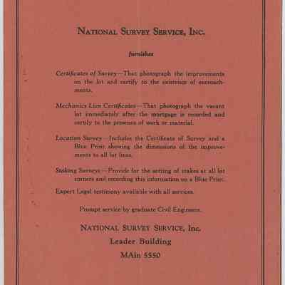 Mortgagee's Certificate of Survey for the Union Trust Co. for 3635 Rawnsdale Road for Mr. and Mrs. Clayton Bradley.Acquisition