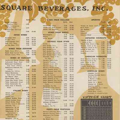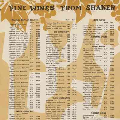 Shaker Square Beverages Wine List, 1957Entry/Object ID