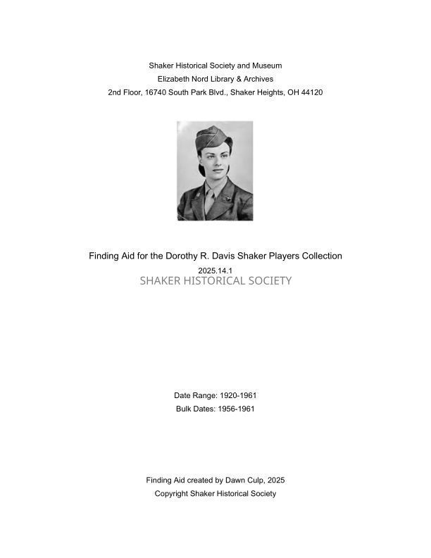 This series contains playbills from performances, Shaker Players letterhead paper, and posters and tickets related to Shaker Players.Date(s) of Creation