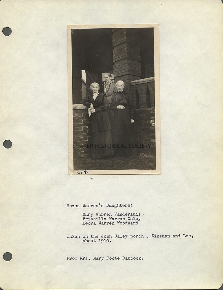 From left to right, the subjects are: Mary Warren Vandersluis, [Sarah] Priscilla Warren Caley, Leora Warren WoodwardPhotograph Details